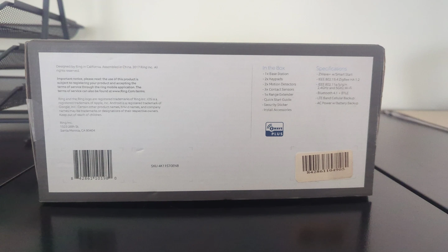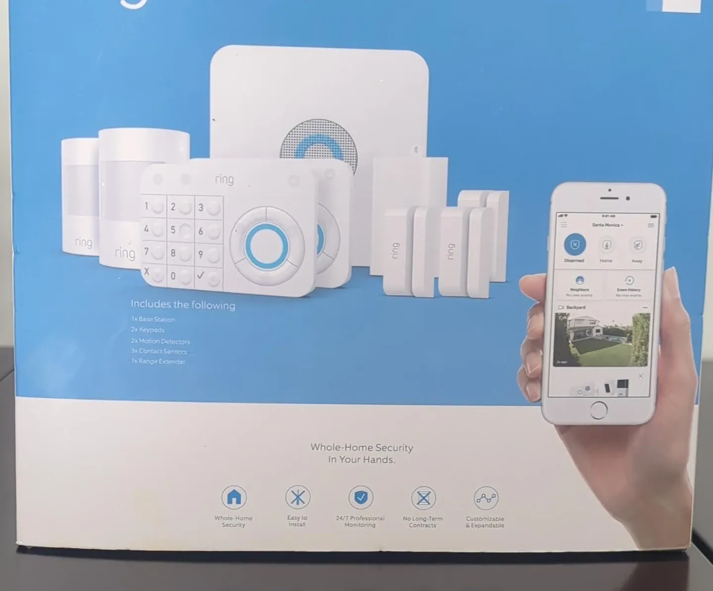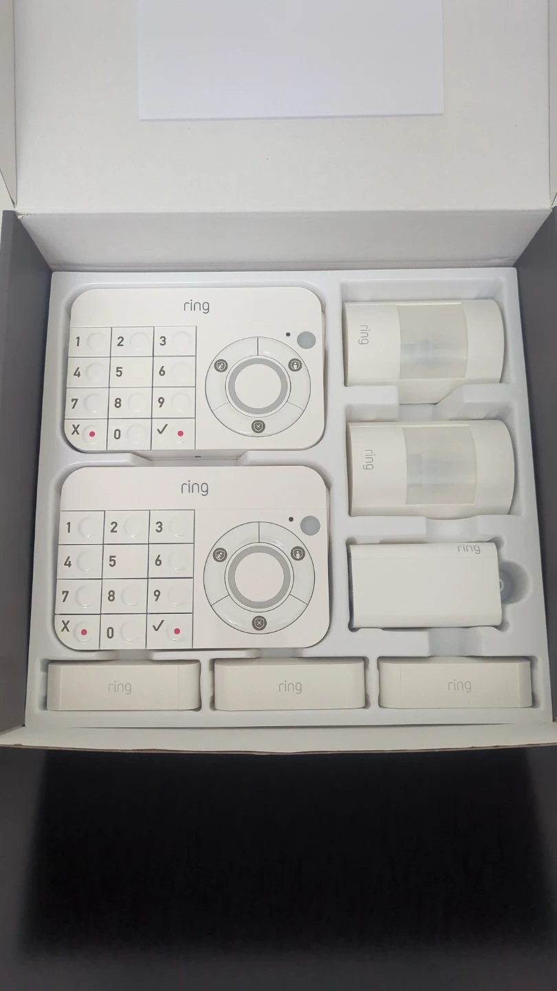 Ring Alarm home security system. Includes 1 Base Station, 2 Keypads, 2 Motion Detectors, 3 Contact Sensors, and 1 Range Extender. Whole-home security made simple and affordable. It's easy to install and customize. Perfect for keeping your home safe!