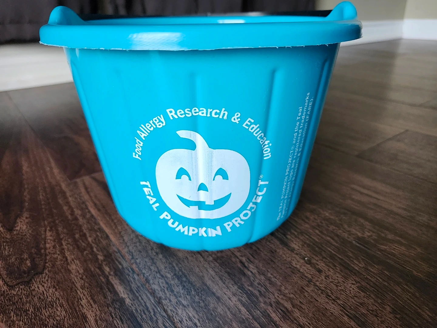 Selling a cute teal Halloween bucket featuring the Teal Pumpkin Project logo! Perfect for trick-or-treating and raising awareness for food allergies. Missed posting this in October. Hoping someone has a child who likes teal 😊