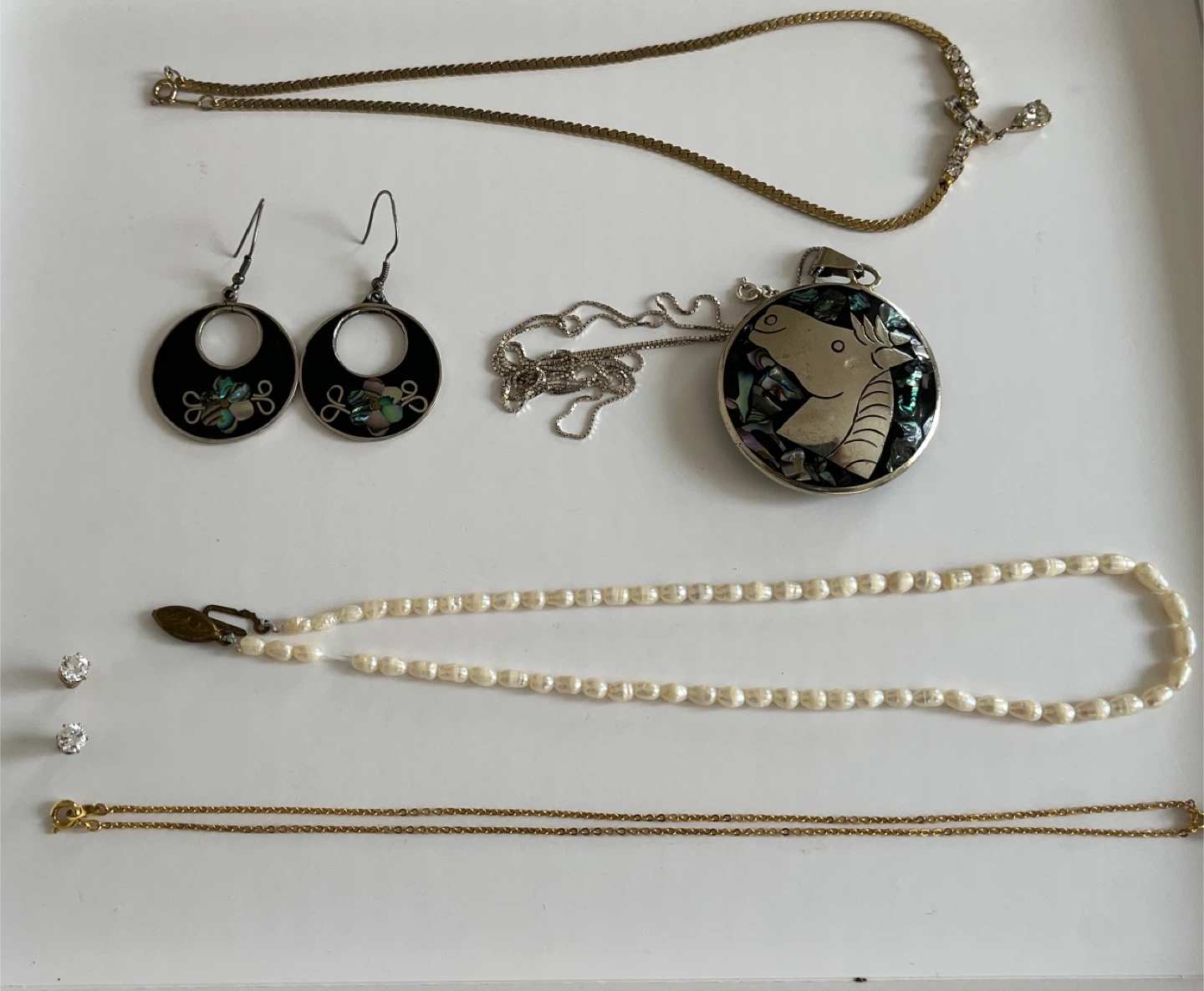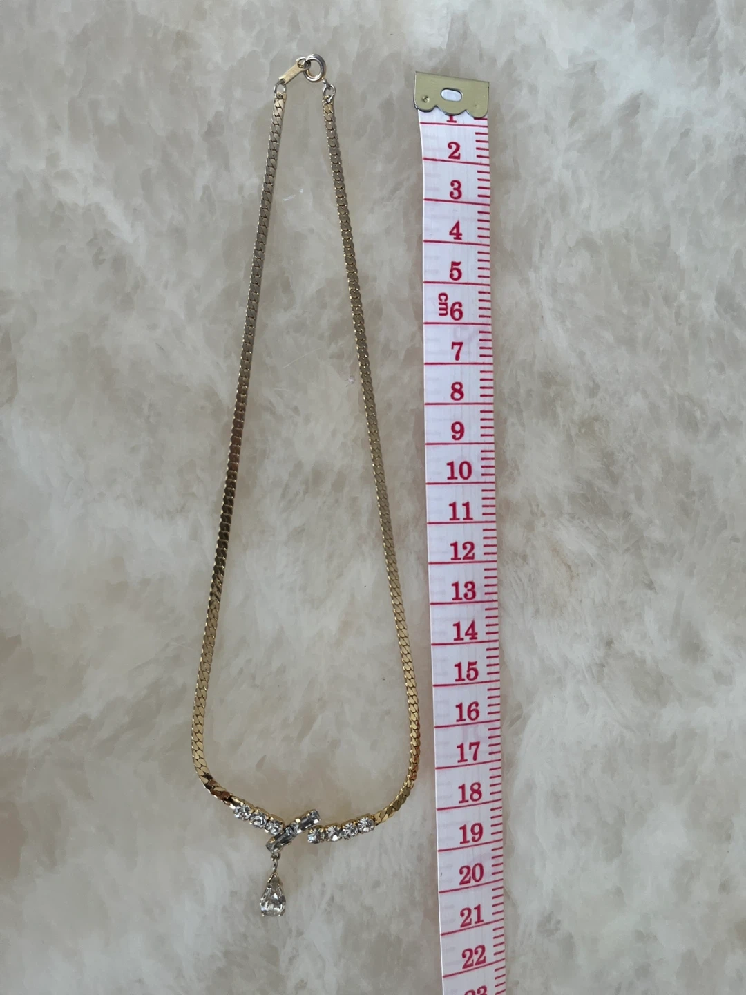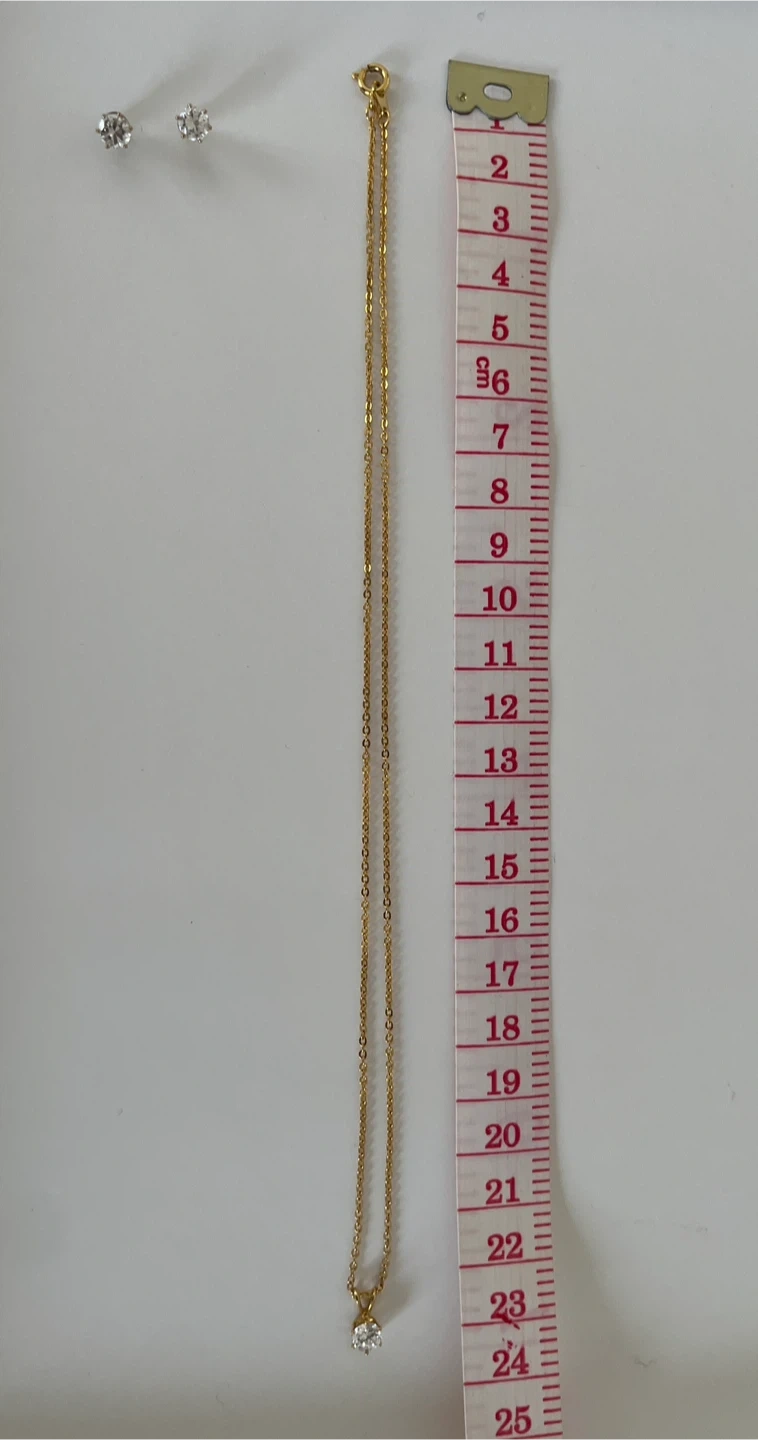 Two of necklaces in 18k gold plated with crystal stone ( one of them with earrings): $35 each