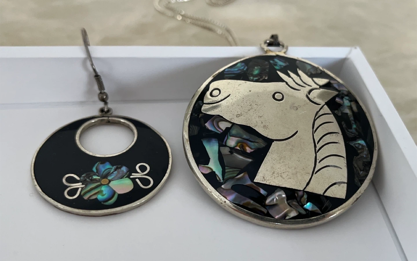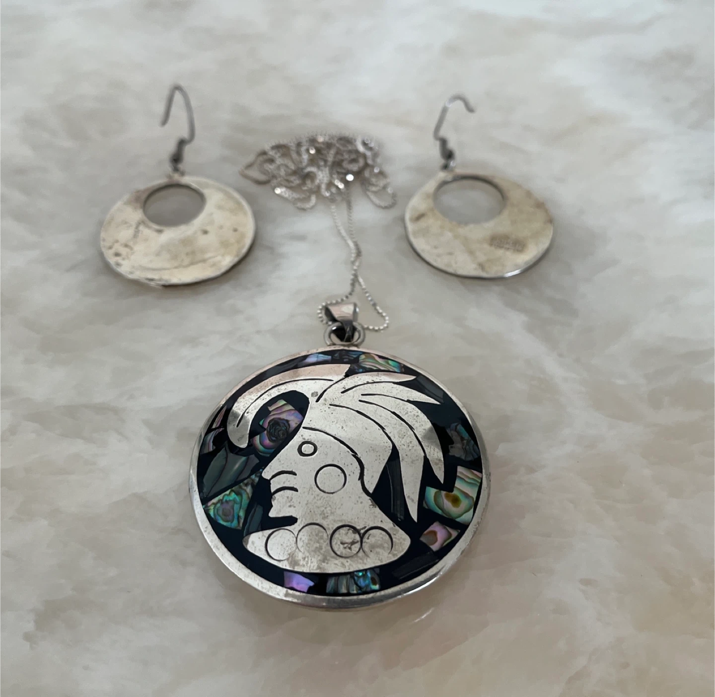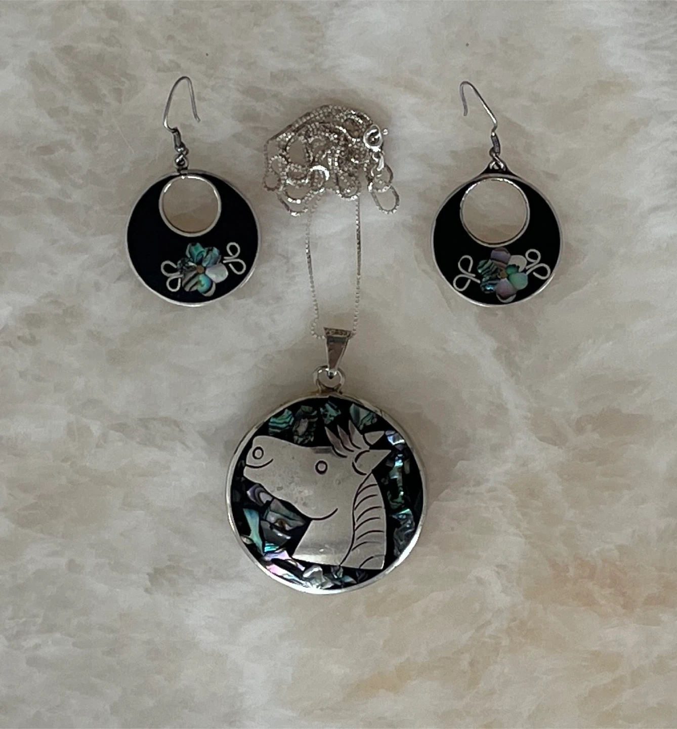 Two of necklaces in 18k gold plated with crystal stone ( one of them with earrings): $35 each
