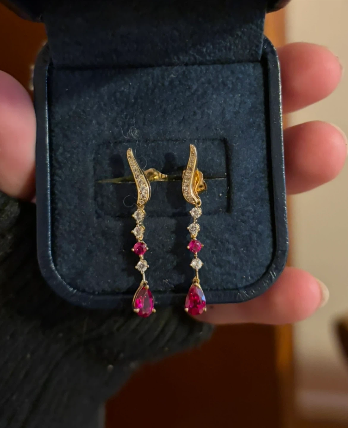 Buy & Sell14k Gold Plated Dangle Earrings w/ Rubies and Diamonds14k Gold Plated Dangle Earrings w/ Rubies and Diamonds$60Gold dangle earrings featuring pear-shaped rubies and accent diamonds. They’ve never been worn. Purchase with any other listing for 25% off!ConditionLike newWHERE TO MEETDitmars Steinway IntersectionView MapSELLERverifiedEugeniaDitmars Steinway681 review0 chats·0 favorites·28 viewsSEND CHAT TO SELLERHi Eugenia! I’m interested in your listing.Hi Eugenia! I’m interested in your listing.Get the Karrot app to chatSign In to chat
