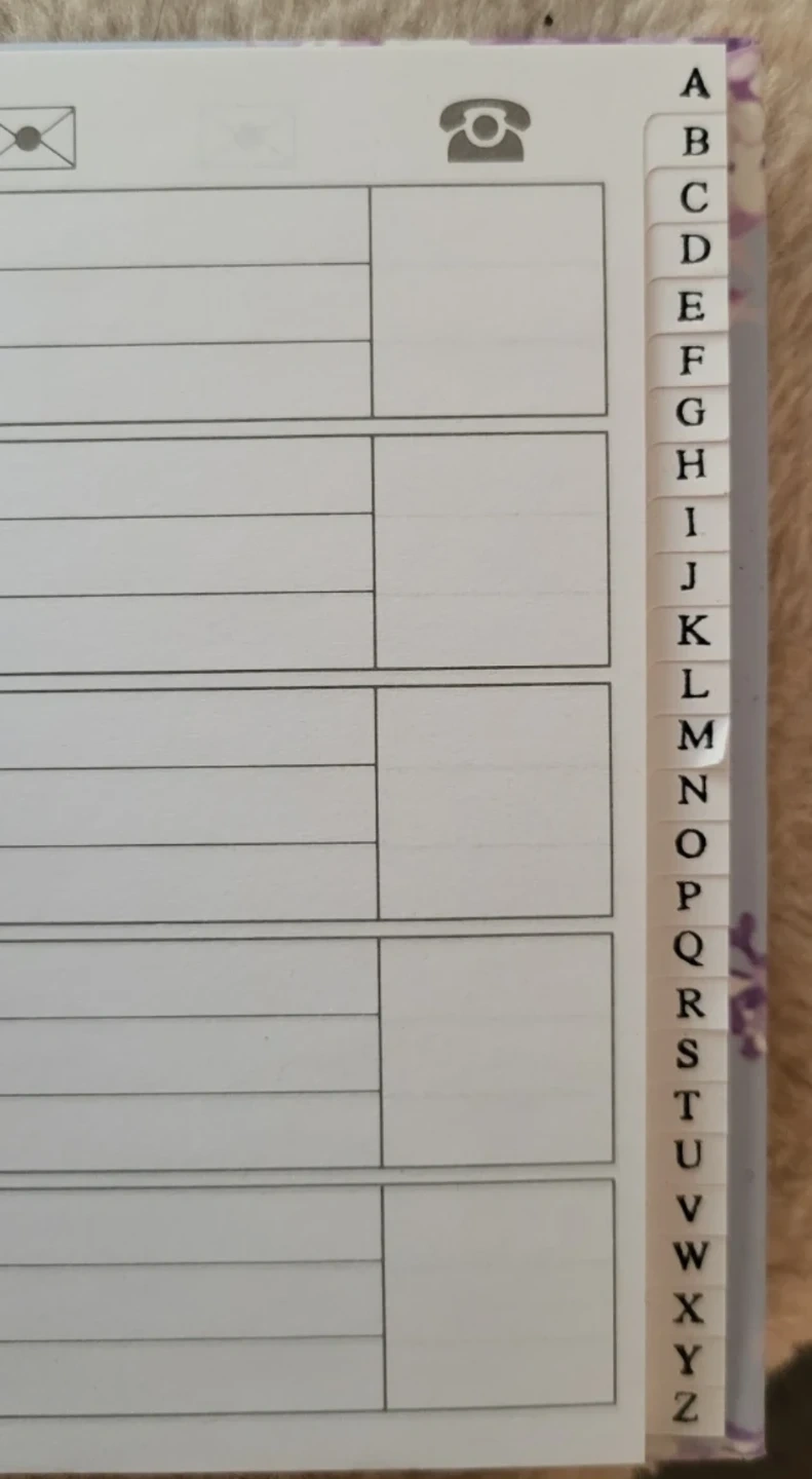 A floral designed address book to keep your contacts organized. Features alphabetical tabs from A to Z. Plenty of space for names, addresses, and phone numbers.