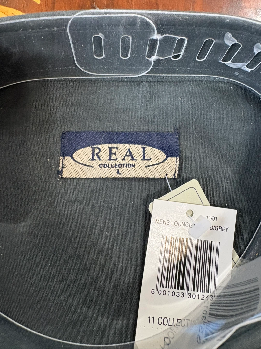This is a REAL COLLECTION Men's Lounge dress shirt. It's a dark grey colour. Button-down collar style with a chest pocket. Size Large.