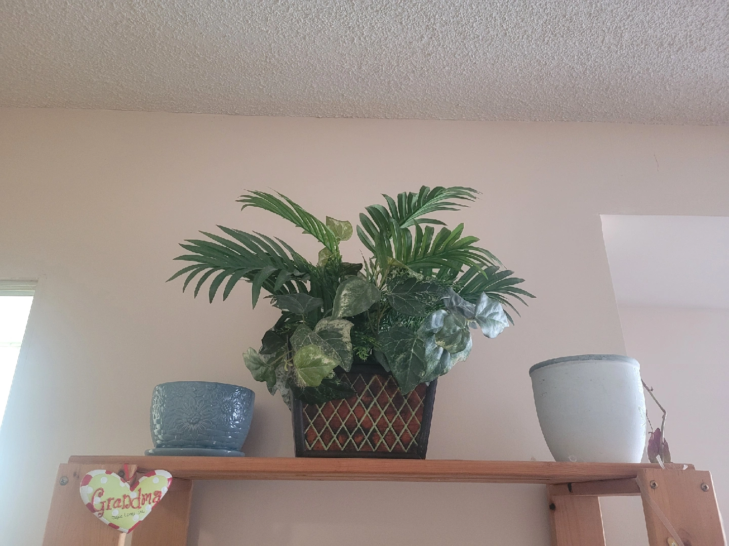 Selling a lovely artificial plant in a decorative pot. It's in great condition and would add a touch of greenery to any room! The pot has a unique diamond pattern.