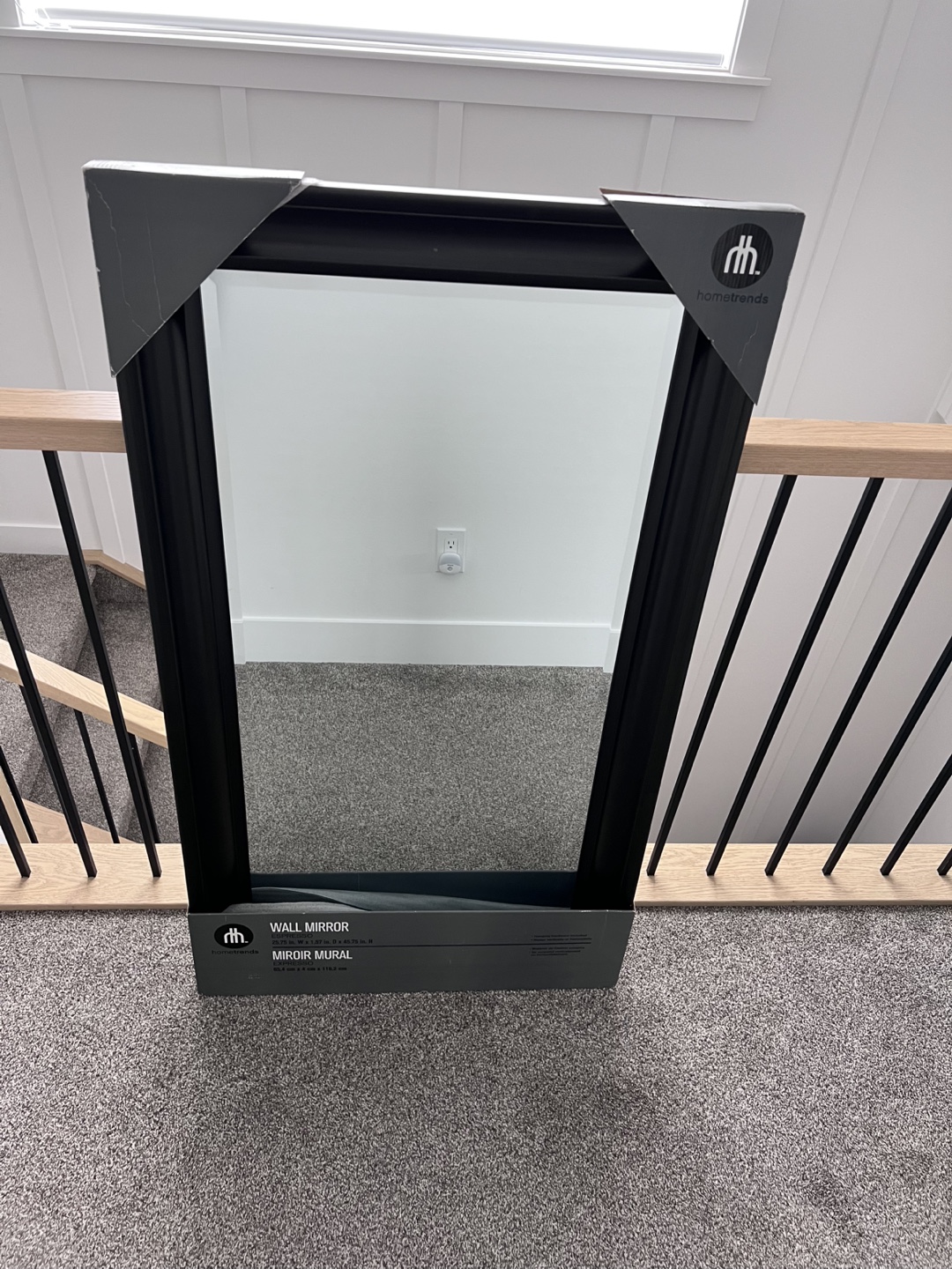 New in box, black framed wall mirror. Rectangular shape. Perfect for any room.