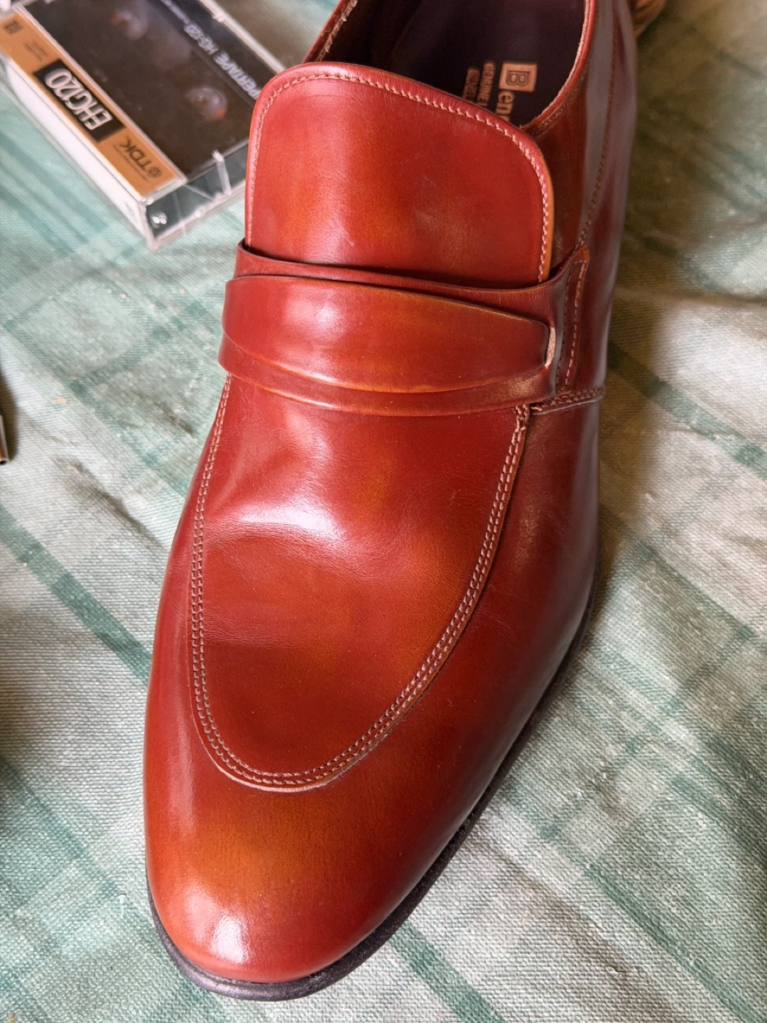 Men's Vintage leather loafer shoes from Canada by Benchmark. The writing on the inside says 12 D and very expensive. I have researched extensively and cannot find the exact shoe anywhere.