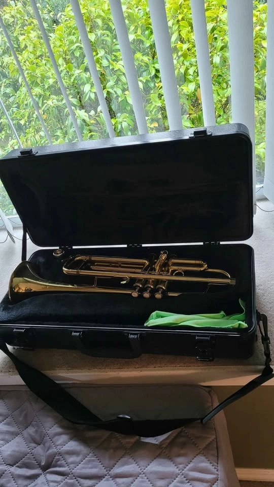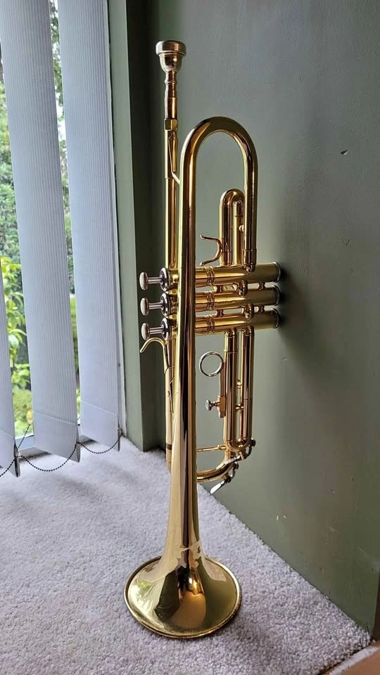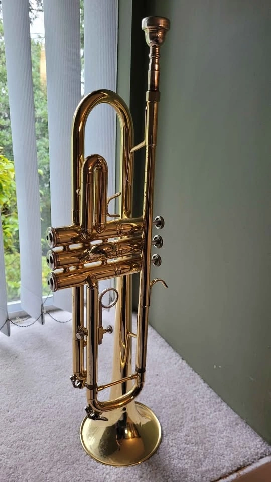 Selling a well-maintained Bach student Bb trumpet, perfect for a beginner or a school band student. This instrument was manufactured in Taiwan, known for producing reliable, high-quality brass instruments that are much more durable and easier to play than cheaper alternatives.