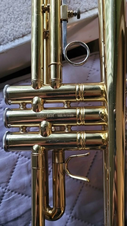 Selling a well-maintained Bach student Bb trumpet, perfect for a beginner or a school band student. This instrument was manufactured in Taiwan, known for producing reliable, high-quality brass instruments that are much more durable and easier to play than cheaper alternatives.