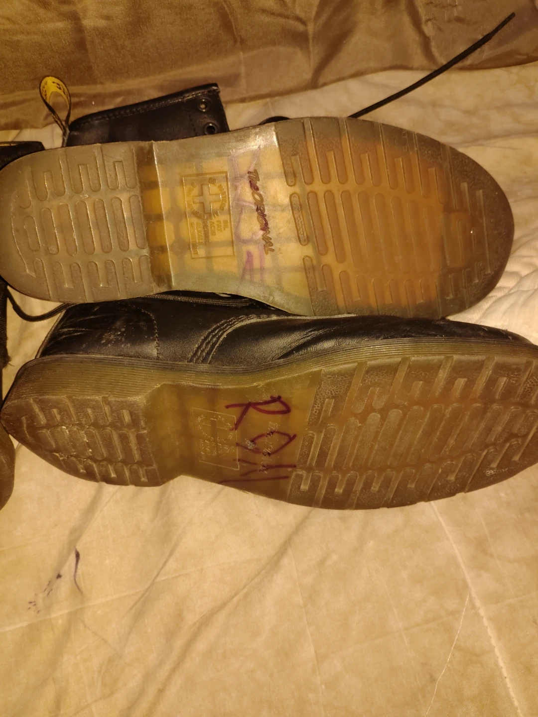 These Dr. Martens boots are black with a durable sole. They feature a classic lace-up design. These boots are ready for wear!
