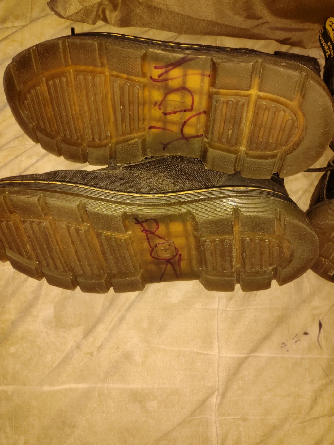 These Dr. Martens boots are black with a durable sole. They feature a classic lace-up design. These boots are ready for wear!