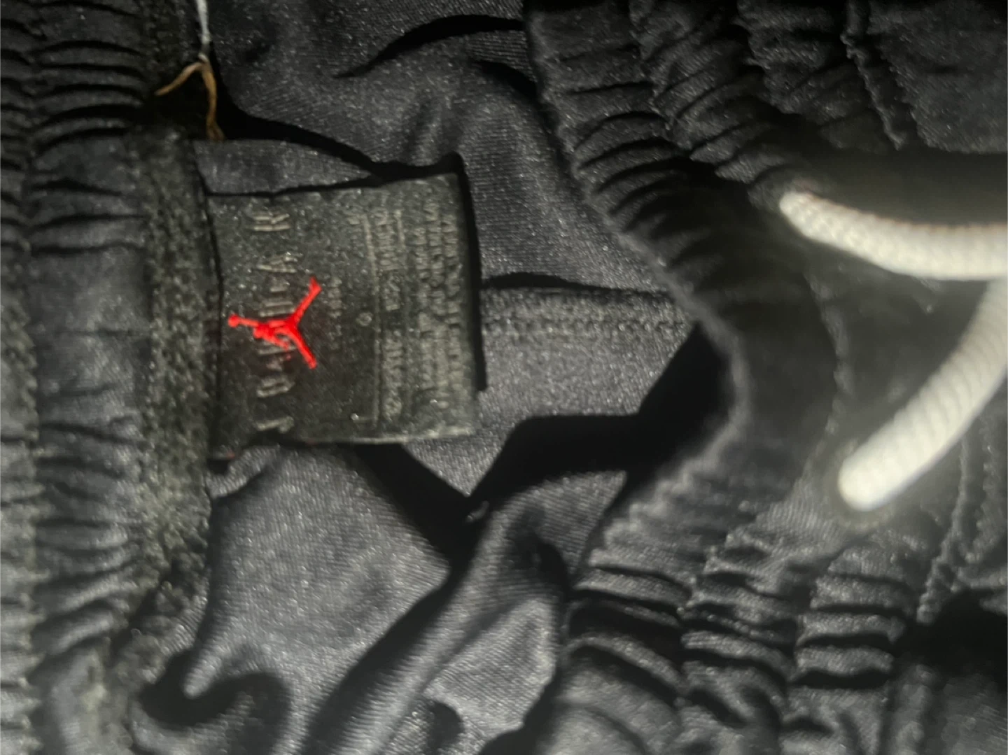 Black Jordan basketball shorts with white drawstring and grey side panels. Features the Jumpman logo. Dri-FIT technology for moisture management.