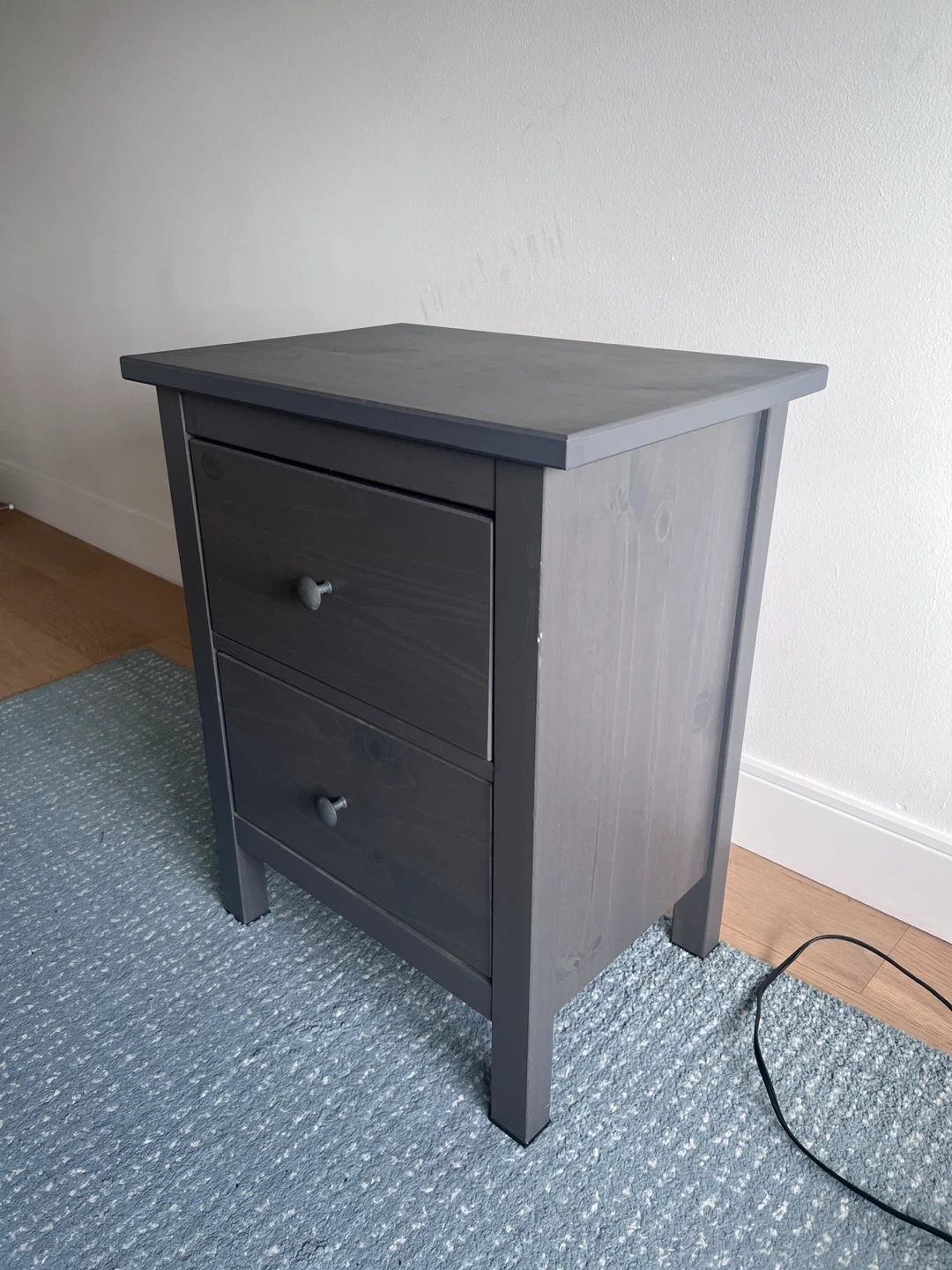 Selling a grey nightstand with two drawers! It’s in great shape and ready for a new home. Perfect for adding some extra storage next to your bed.