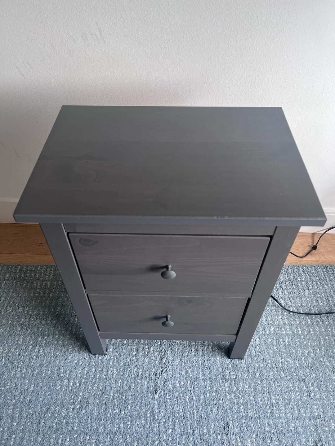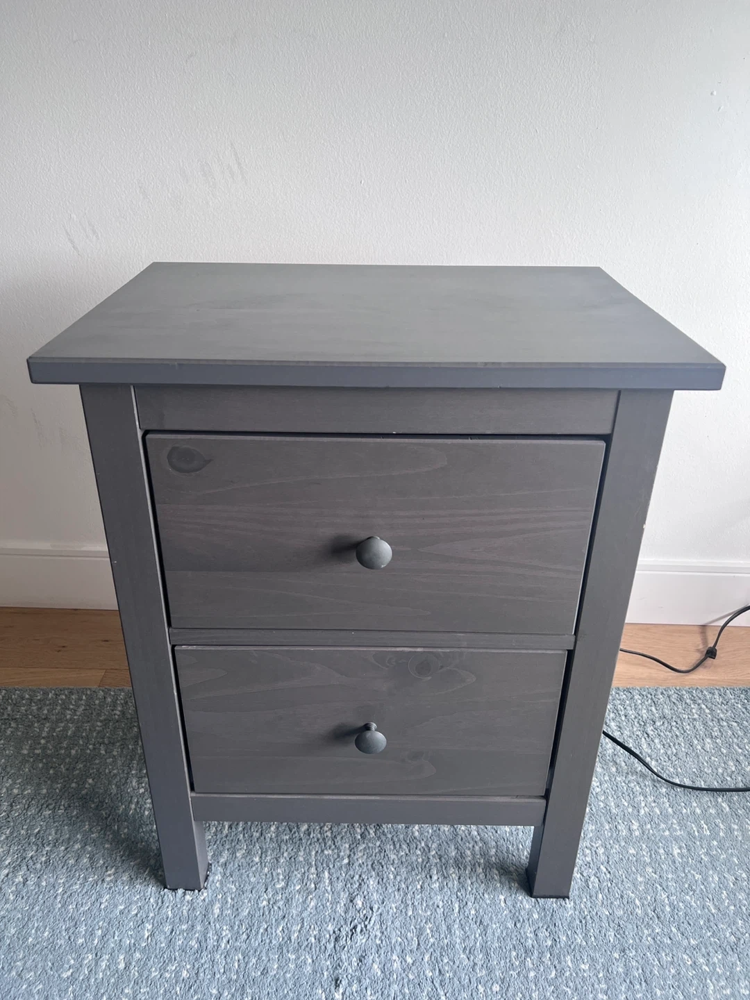 Selling a grey nightstand with two drawers! It’s in great shape and ready for a new home. Perfect for adding some extra storage next to your bed.