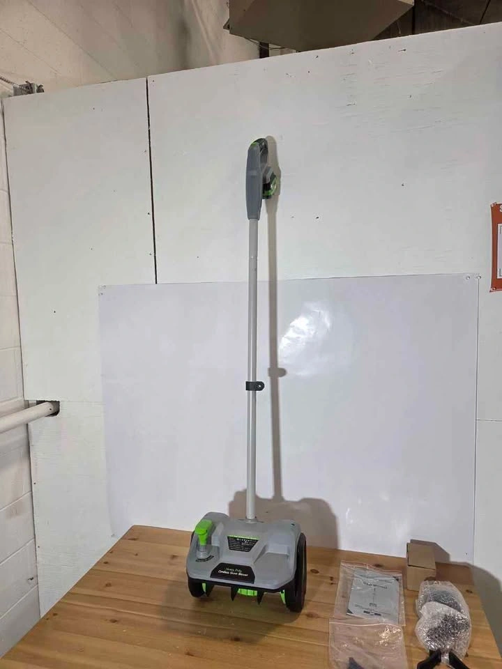 Brand new 12-inch cordless snow shovel for easy snow clearing. Lightweight design for comfortable handling. Efficient for driveways, sidewalks, and patios. Battery and charger compatible with EGO Power+ system. Ready for pickup today.
