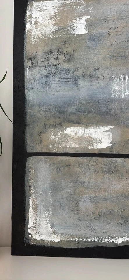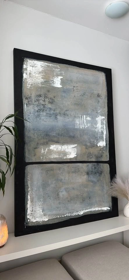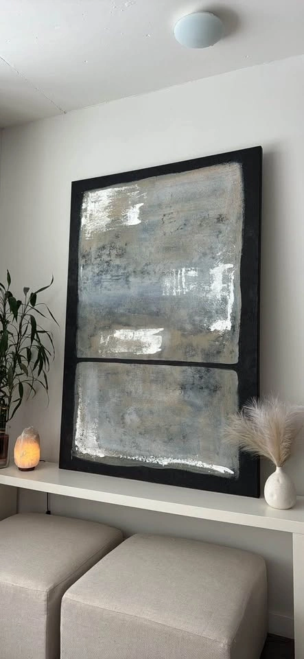 Oversized Original Painting, perfect for living room, entry way, foyer, bedroom, dining room, office decor. 4 feet by 6 feet (48” x 72”). Classic Modern, Abstract Painting. Black, White, Grey, Beige, Textured.