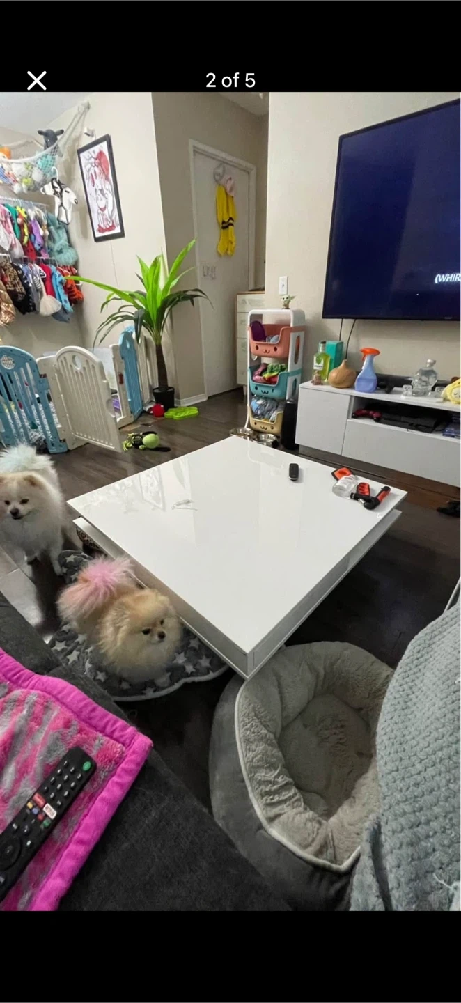 This square coffee table features a sleek white finish and multiple storage options. It includes two hidden drawers and open shelves for keeping remotes, magazines, and other small essentials tidy. The stylish gold legs add a touch of modern elegance to your living space. Perfect for a contemporary living room setup!