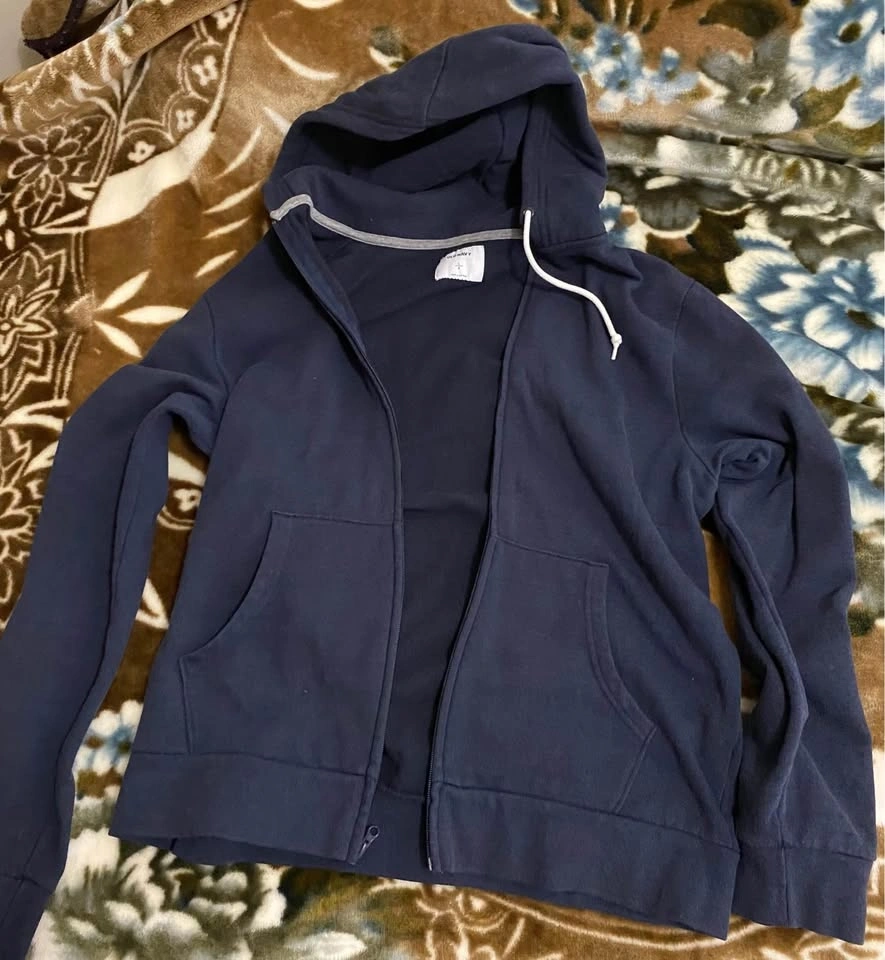 Comfortable pair of hoodies. Includes one dark charcoal grey zip-up hoodie from Old Navy and one black pullover hoodie from Volcom. Volcom hoodie has a pink graphic on the front chest and a large matching pink 'Volcom Stone' graphic on the back. Both have front pockets and adjustable drawstrings. Hollister gray hoodie. Used hoodies in good condition. Size L & M. $10 each. Buy 2 for $15. Buy 3 for $20