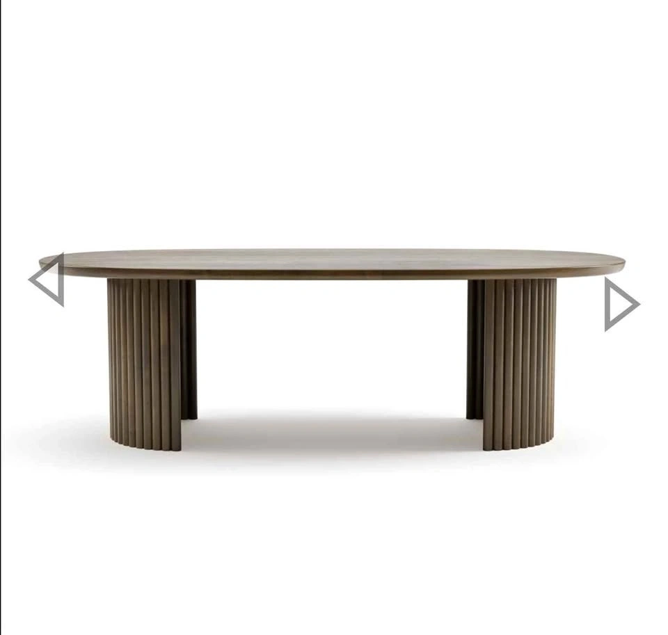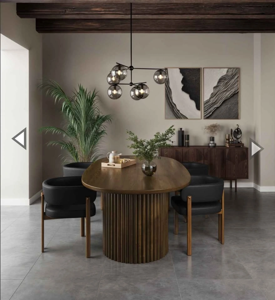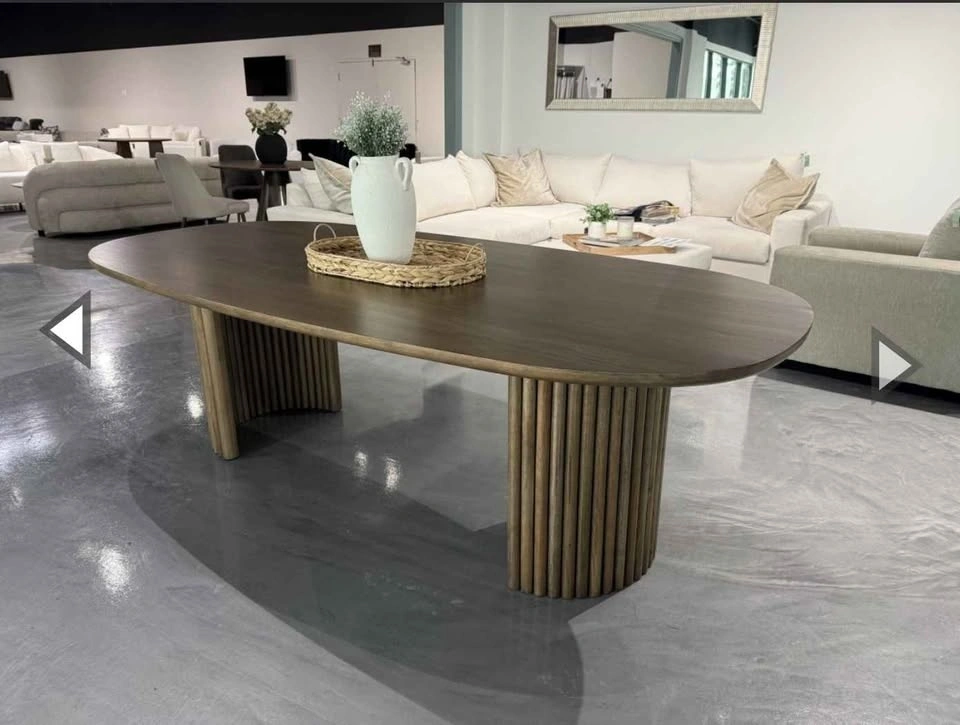 Elevate your dining space with the Odilia Dining Table in Walnut! This exquisite piece brings contemporary style and a fresh, modern look to any home. Crafted from solid wood, it offers both durability and elegance. The tapered top adds a sleek touch, while the double fluted pedestals create a sophisticated design. This table showcases exceptional craftsmanship and quality, with a walnut finish that highlights the wood's natural beauty and brings a light, airy feel to your dining room.