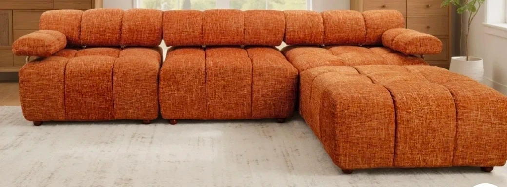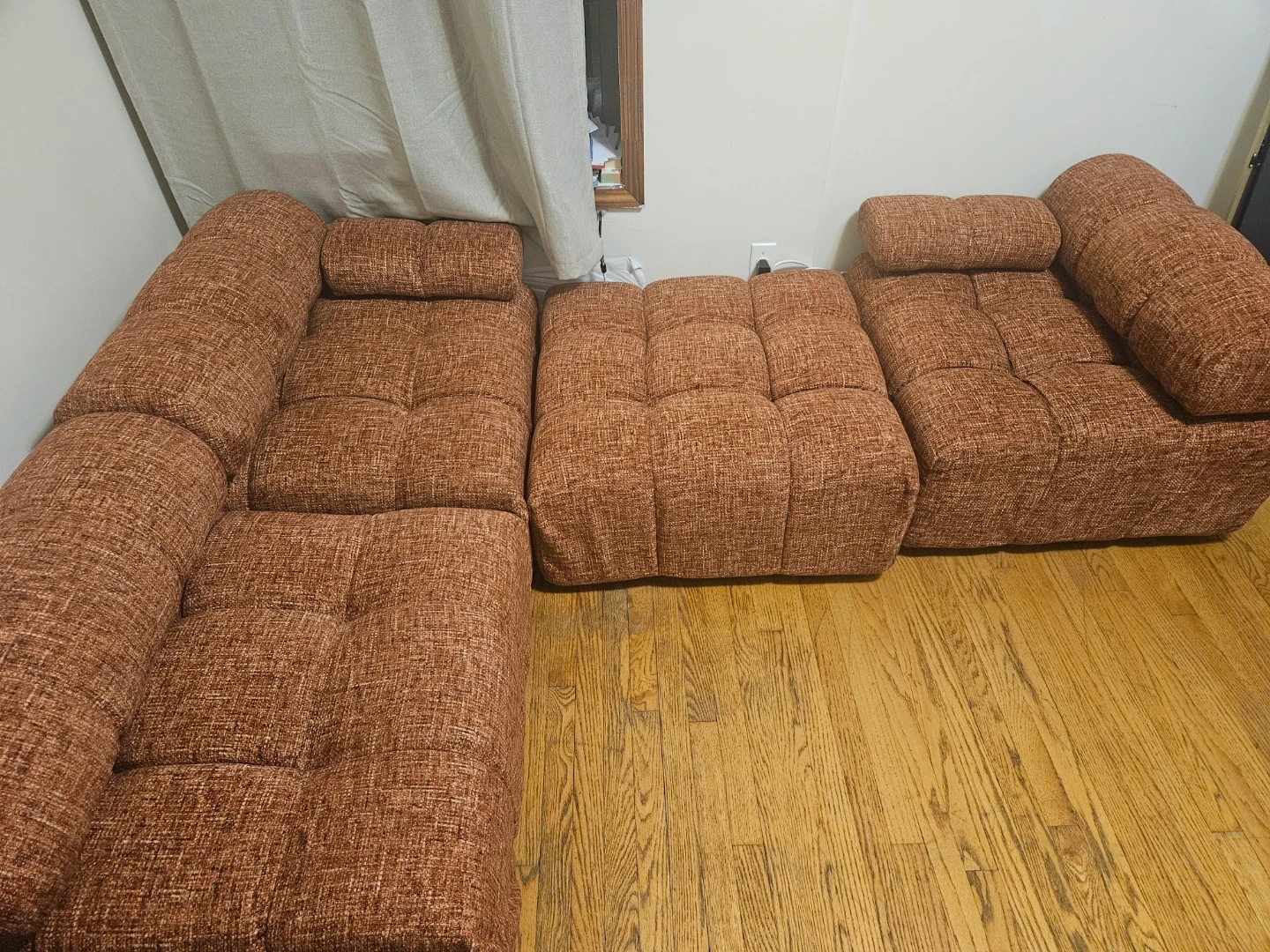 Looking to sell this cozy orange modular sectional sofa! It's in great shape and ready for a new home.