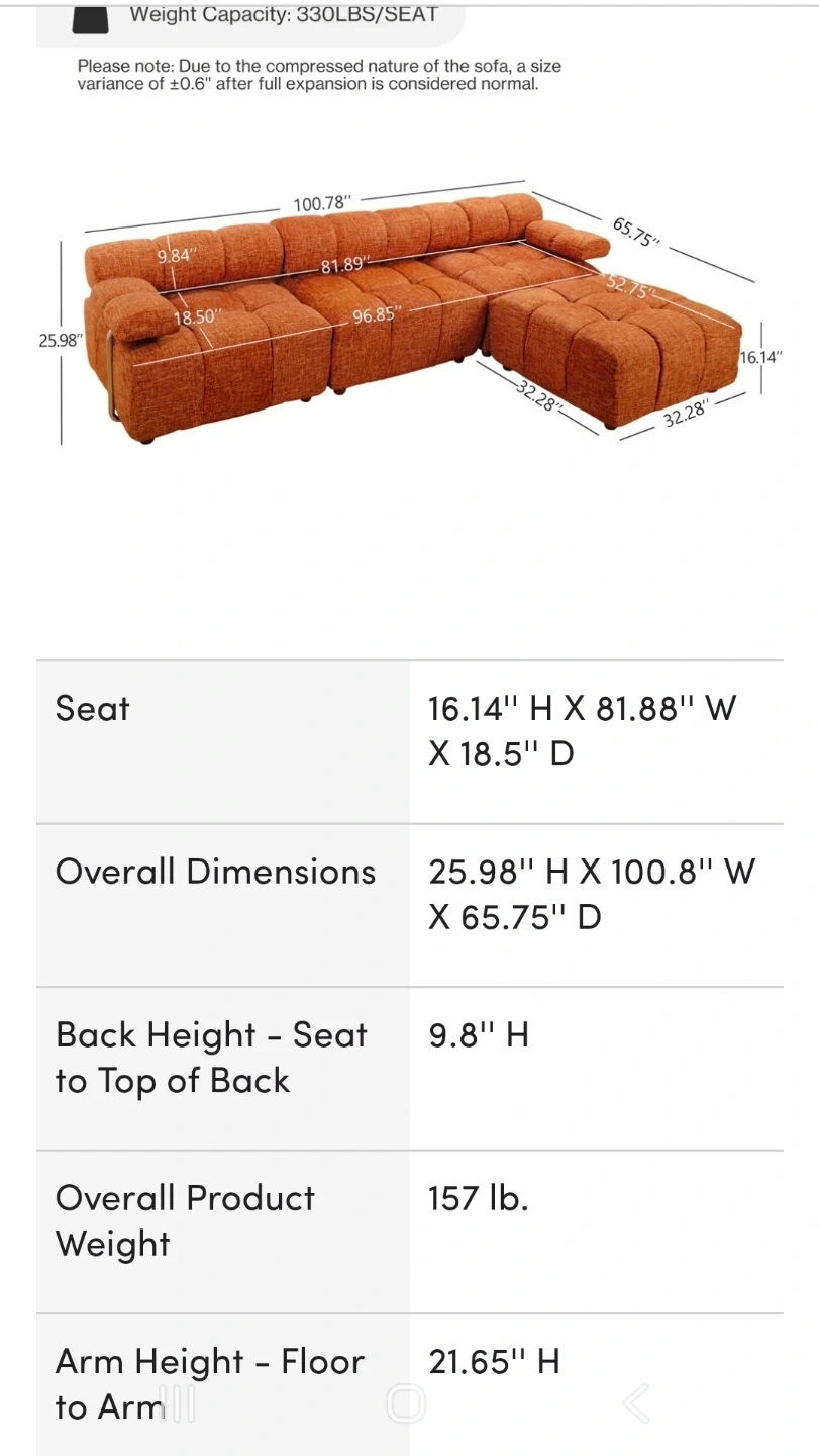 Orange Modular Sectional Sofa - 100.78" x 65.75"