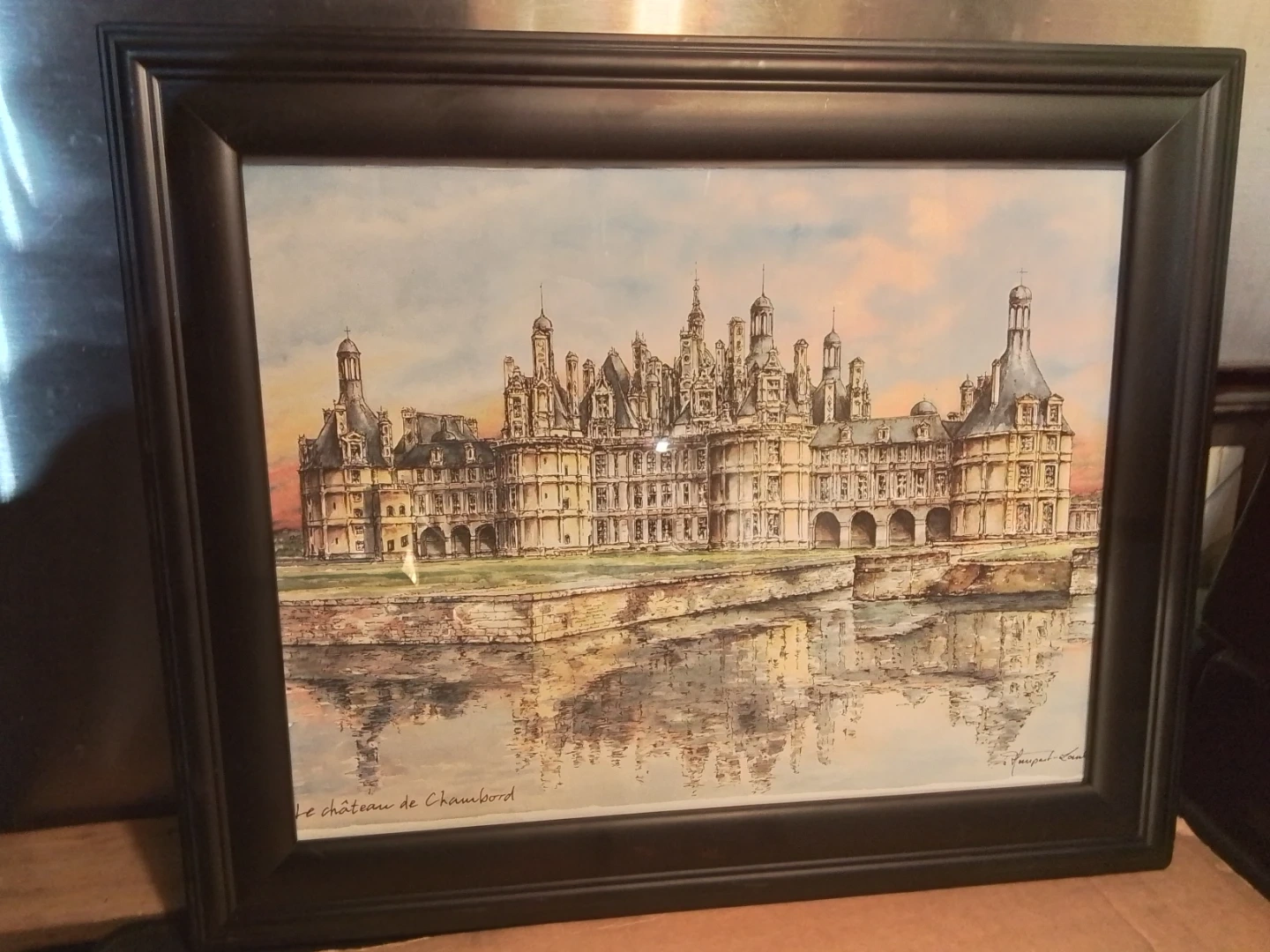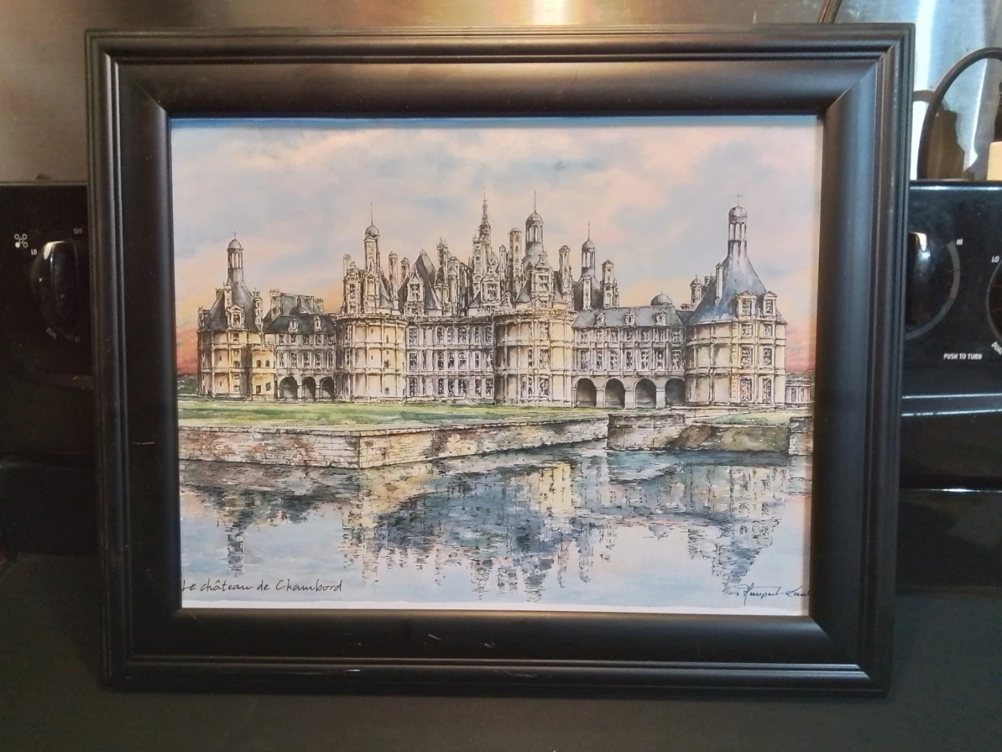 Framed Le Château de Chambord Signed 17.25x14.25"