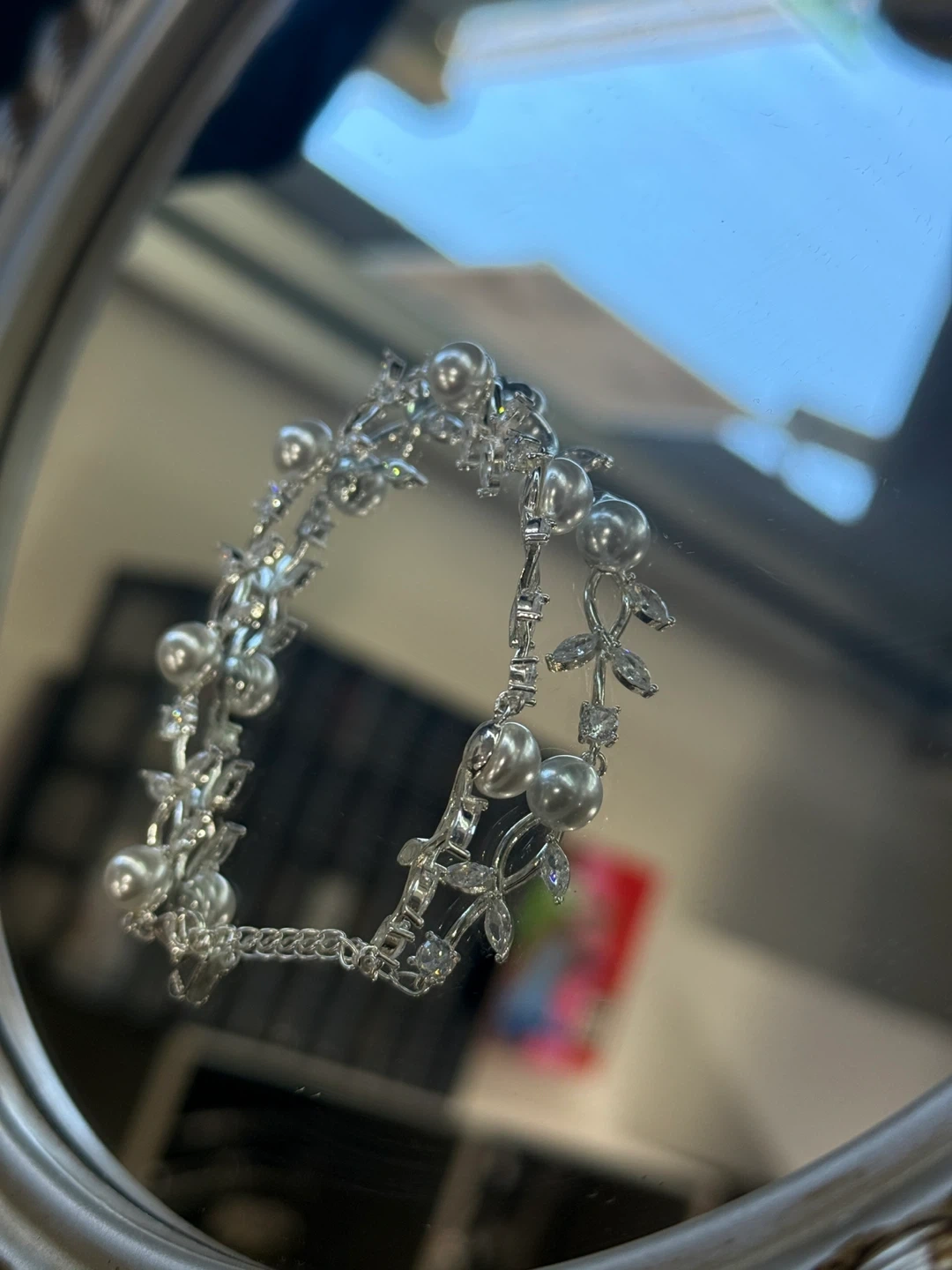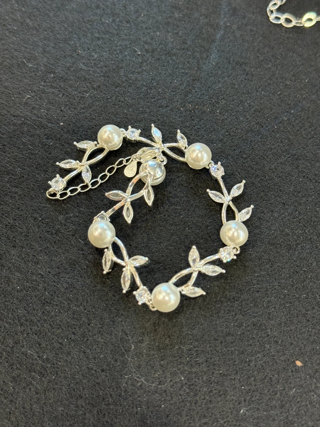 Selling a beautiful bracelet adorned with pearls and crystal floral accents! It's perfect for adding a touch of elegance to any outfit. The silver color makes it versatile for various occasions. It's in excellent condition and ready to be enjoyed!