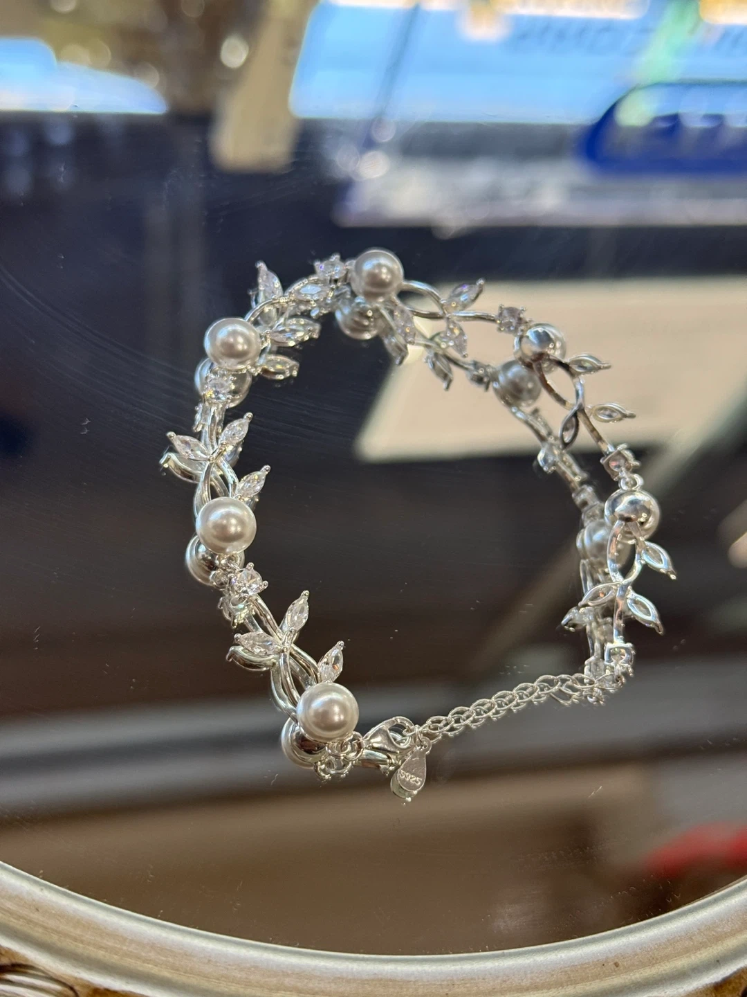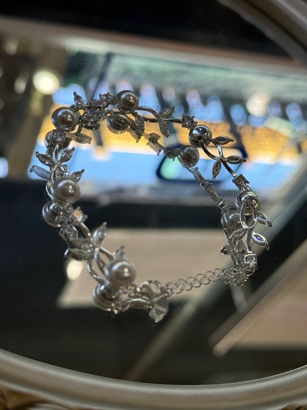 Selling a beautiful bracelet adorned with pearls and crystal floral accents! It's perfect for adding a touch of elegance to any outfit. The silver color makes it versatile for various occasions. It's in excellent condition and ready to be enjoyed!