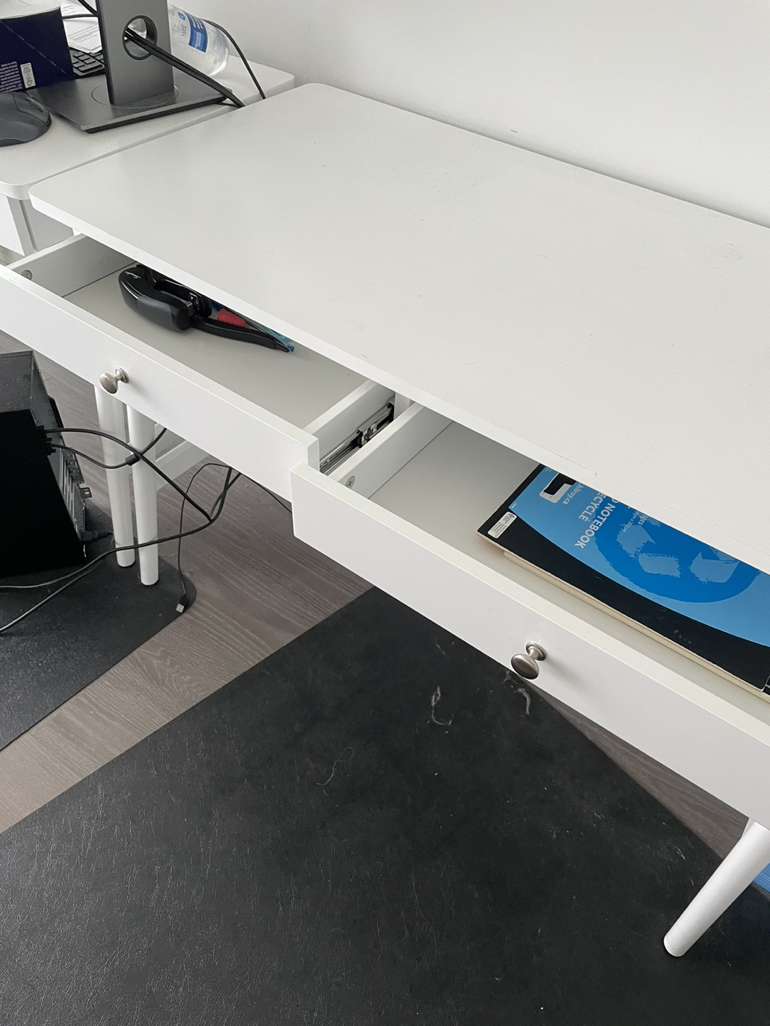 Buy & SellWhite desk White desk $50 29” tall 43.5” wide 21.5” deep 2 drawers ConditionLike newWHERE TO MEETCheck LocationView MapSELLERBardoAnnex158 reviews3 chats·6 favorites·260 viewsSEND CHAT TO SELLERHi Bardo! I’m interested in your listing.Hi Bardo! I’m interested in your listing.Get the Karrot app to chatSign In to chat