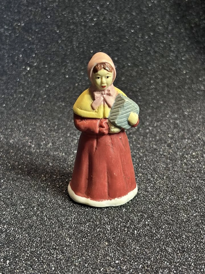 Vintage Christmas village figurine of a Victorian Woman holding a Bundle 📦 in great condition.