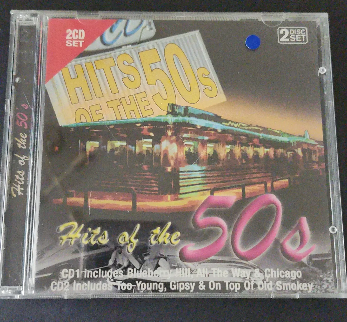 This is a 2CD set titled Hits of the 50s. CD1 includes Blueberry Hill, All The Way & Chicago. CD2 includes Too Young, Gipsy & On Top Of Old Smokey. It's a collection of music from the 1950s. 44 TRACKS, NO SCRATCHES, NO SKIPS