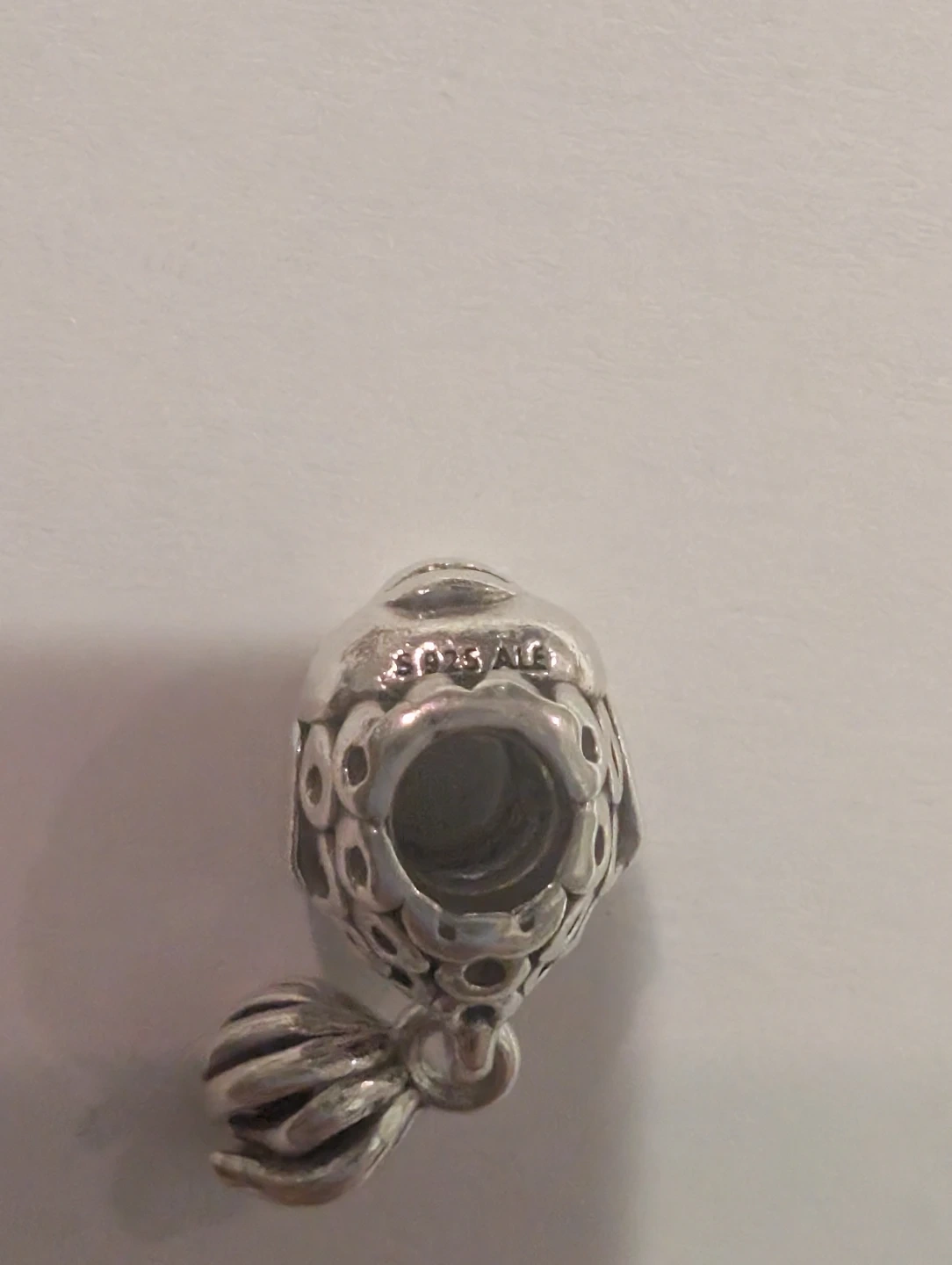 Sterling silver Pandora charm bead shaped like a pufferfish. Features a detailed, openwork design. Marked S925 ALE weight 4.85 grams in excellent condition