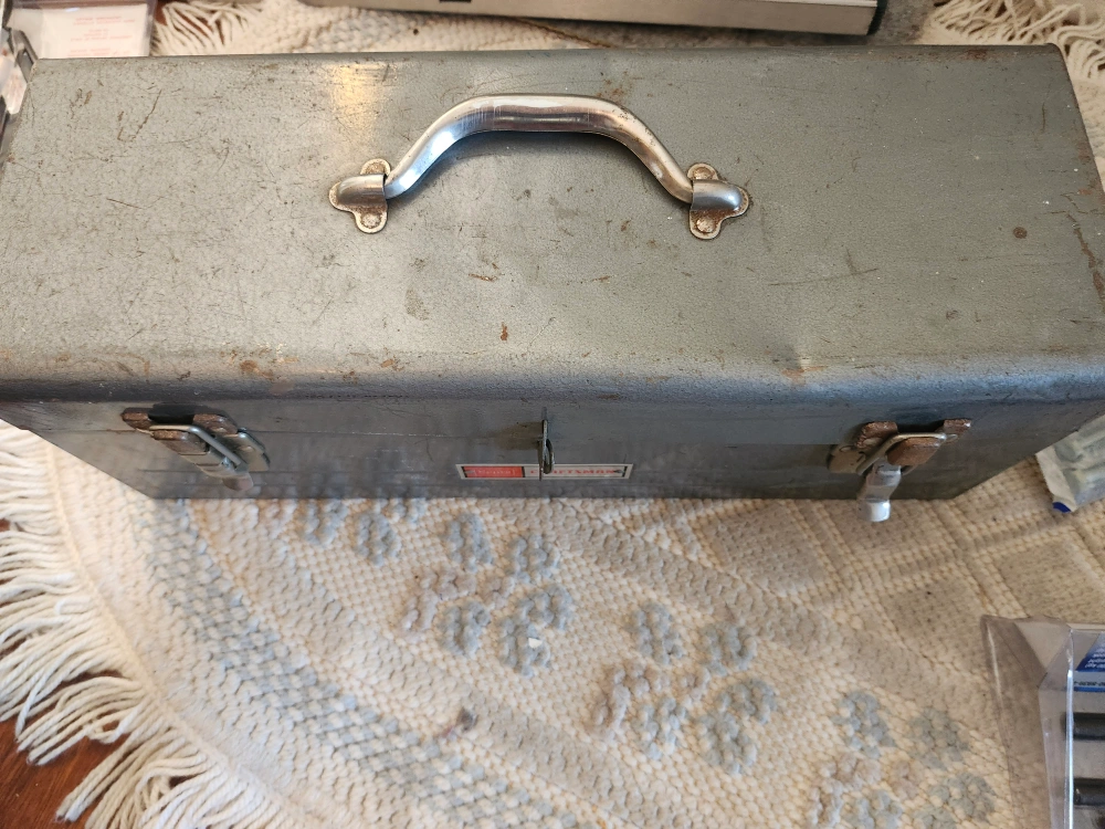 This is a vintage Craftsman tool box with a variety of tools. The box has a red tray and is in good used condition. The tools included are in various condition, some are older than others. It is a great vintage toolbox.