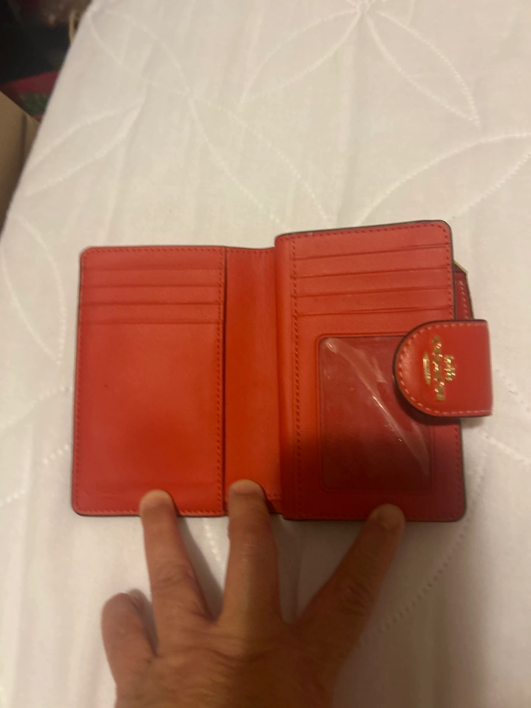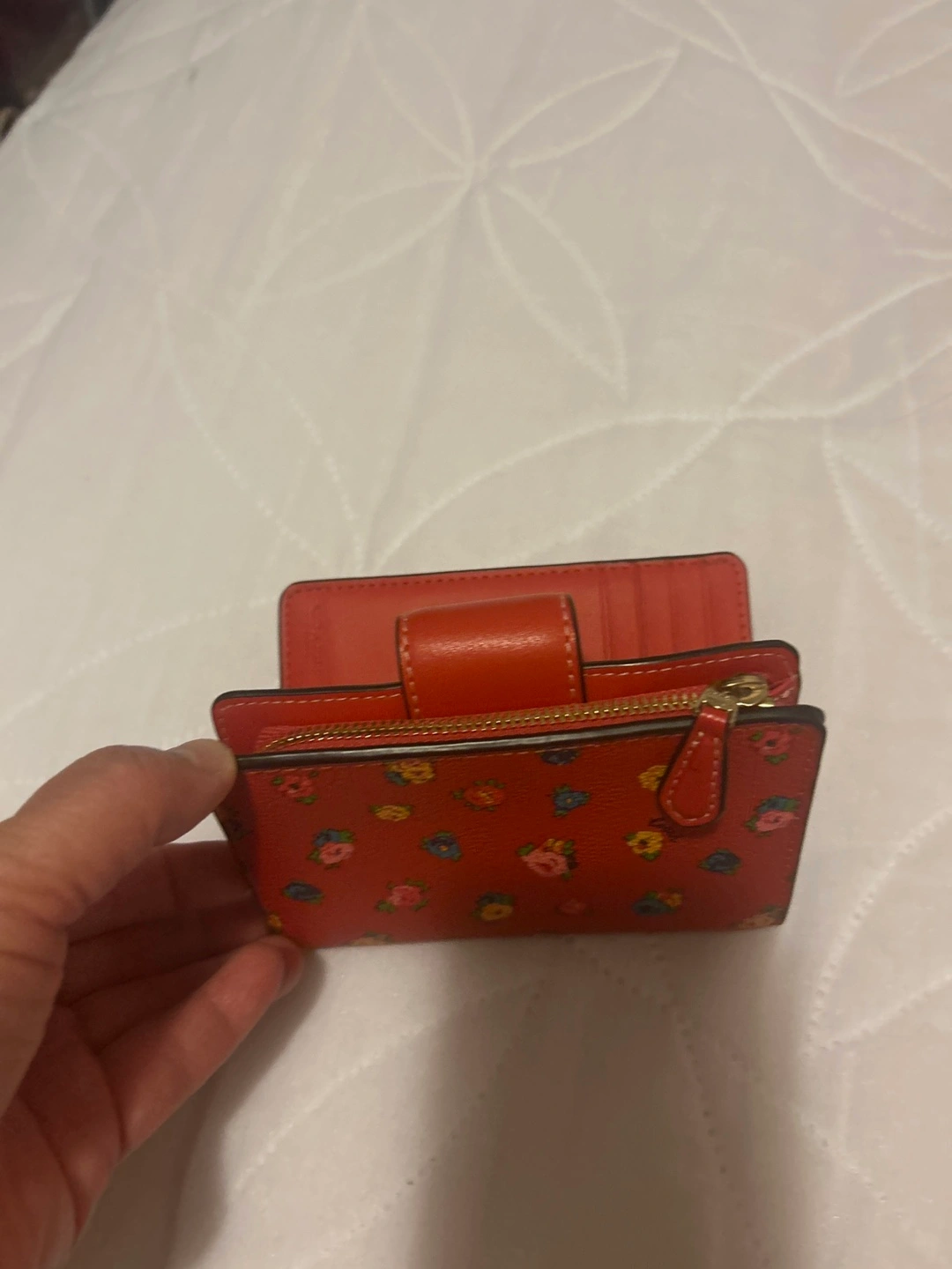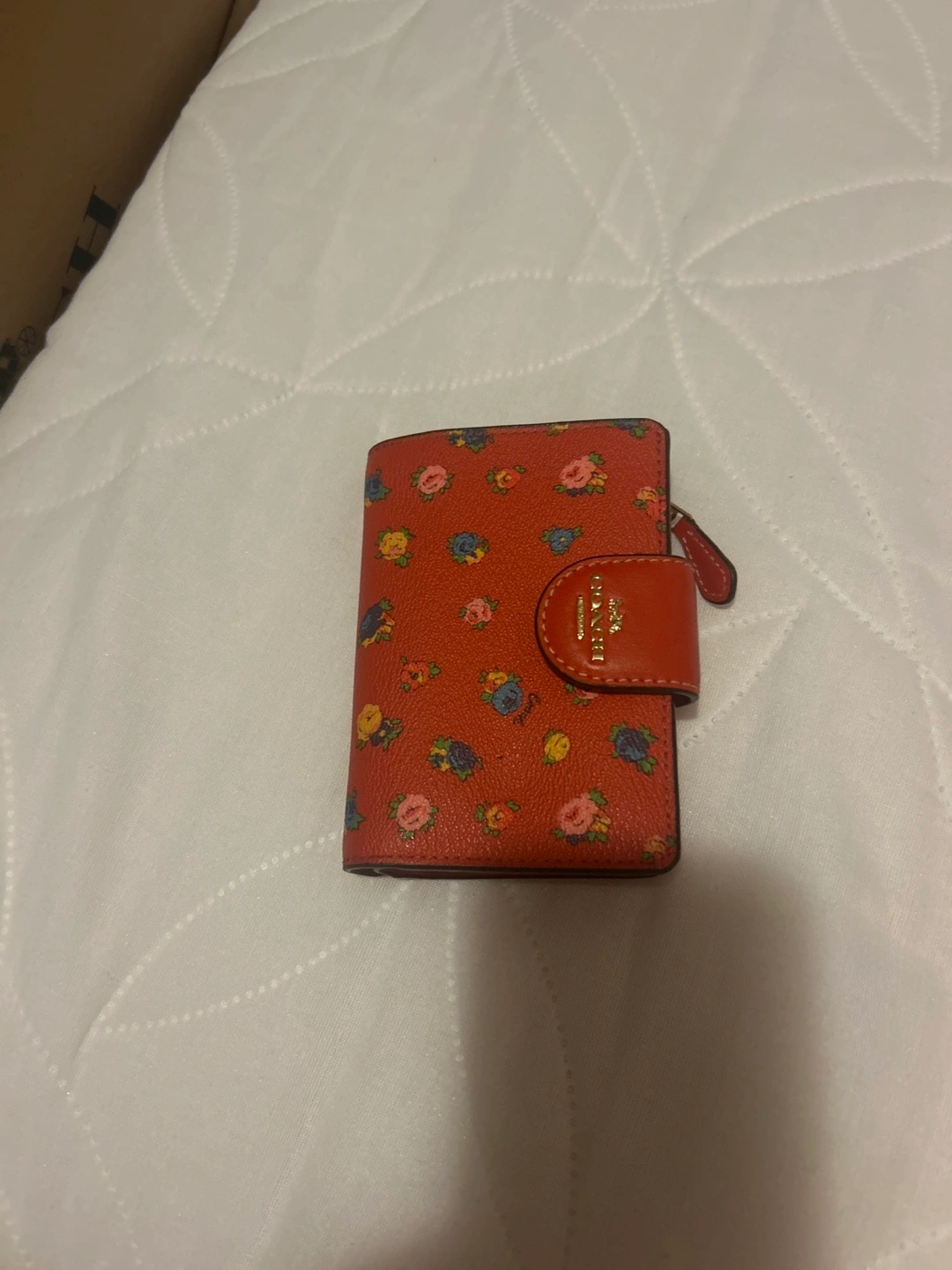 Selling a cute Coach wallet with a floral print! It's in great condition and perfect for carrying your essentials. The wallet features a snap closure and a zippered compartment.