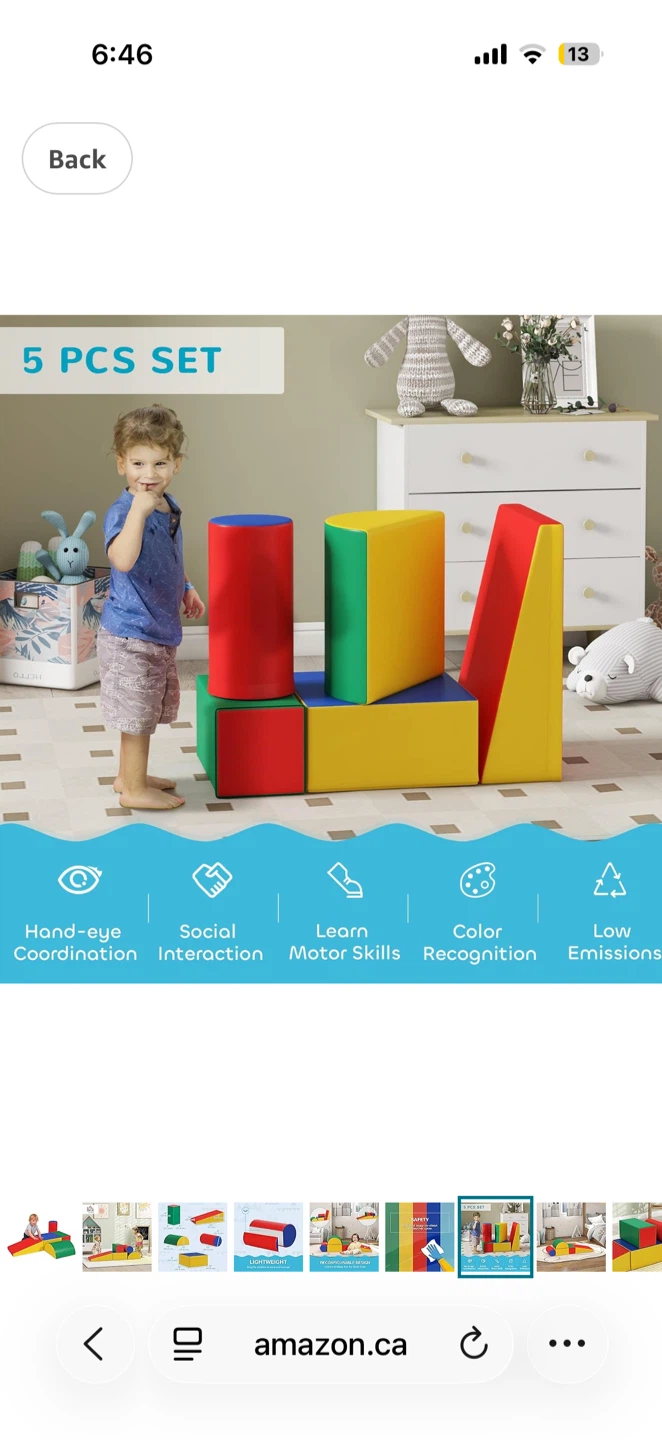 5-Piece Creative Play: Kids can spark imagination by rebuilding these multicoloured, mix-and-match foam blocks with any combination, suitable for climbing, sliding, and mastering motor skills.