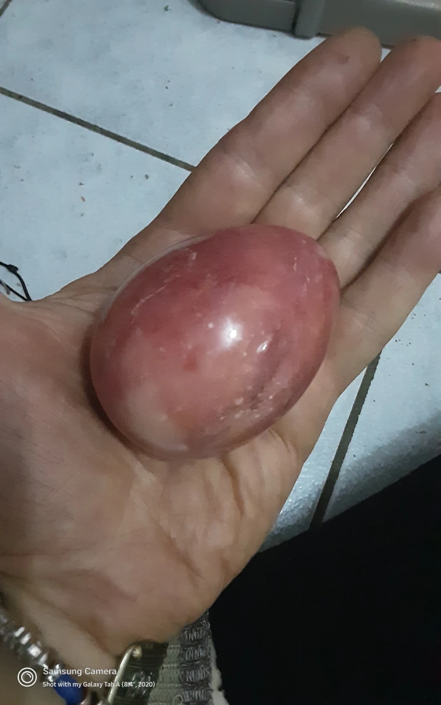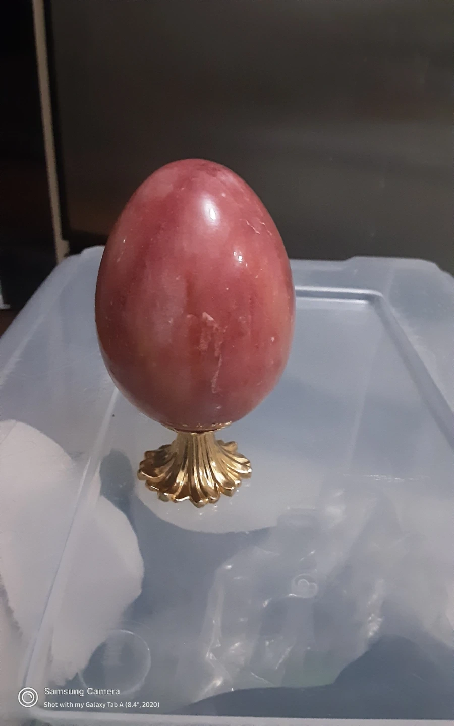 This is a natural rose quartz egg, approximately 3 "in size. It's a beautiful pink colour and comes with a decorative gold stand. Perfect for display or meditative practices!