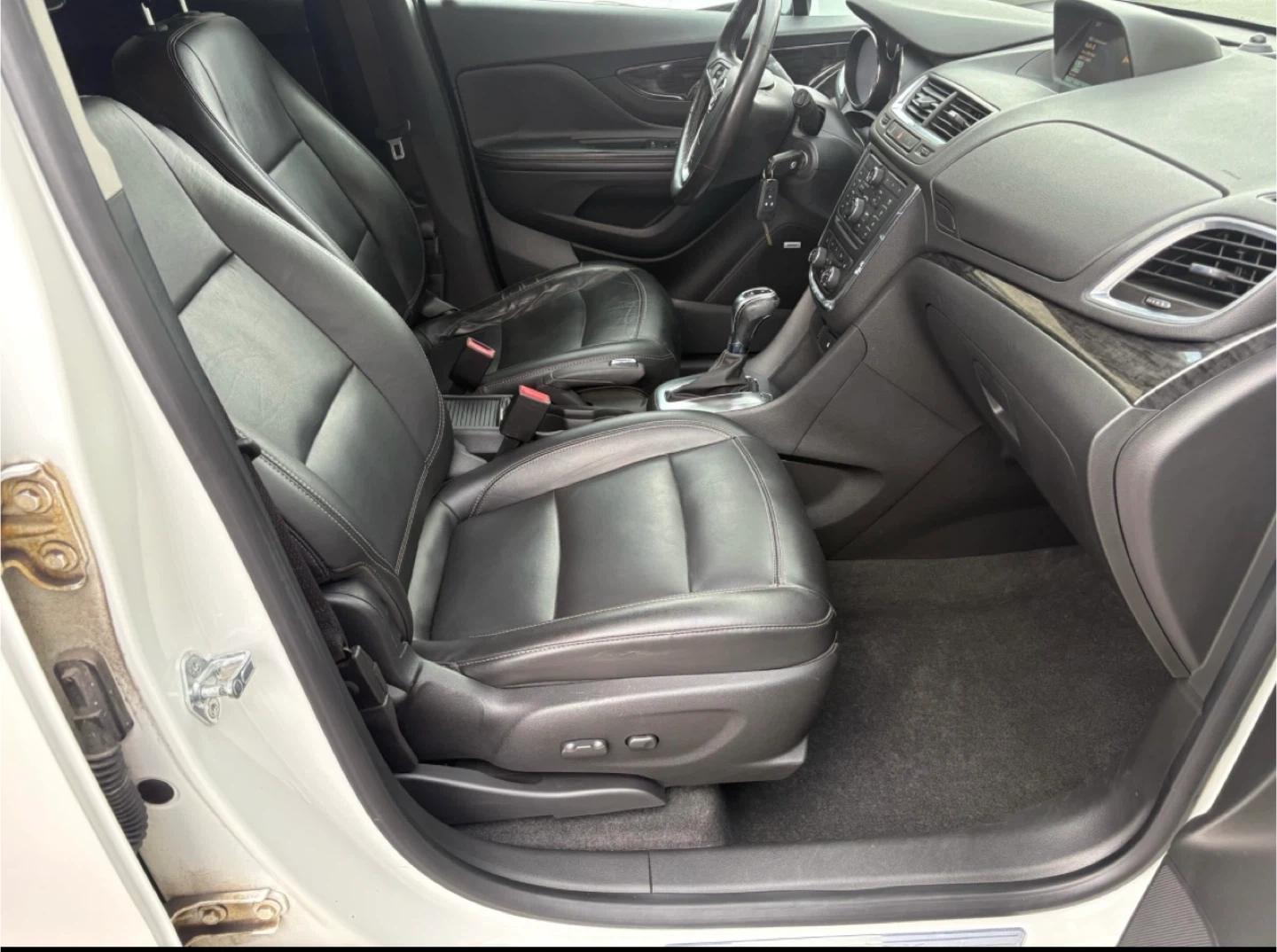 Selling a white Buick Encore SUV. It's in good condition and ready for a new owner. The interior is black leather. It's a great vehicle for getting around town!