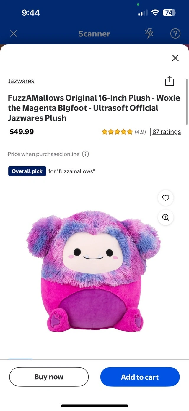 Meet Woxie the Fuzzamallow, a delightful 16-inch magenta bigfoot plush by Jazwares, ready to bring joy and cuddles to your home! This ultrasoft, original FuzzAmallows plush is in new condition, still sealed in its original packaging. Brand: Jazwares, Character: Woxie, Size: 16 inches, Type: FuzzAmallows Plush, Colour: Magenta, Condition: New. Cash accepted.