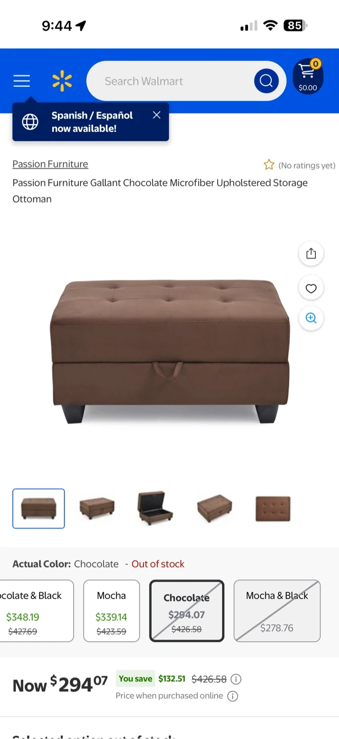 Passion Furniture Gallant Chocolate Microfiber Storage Ottoman