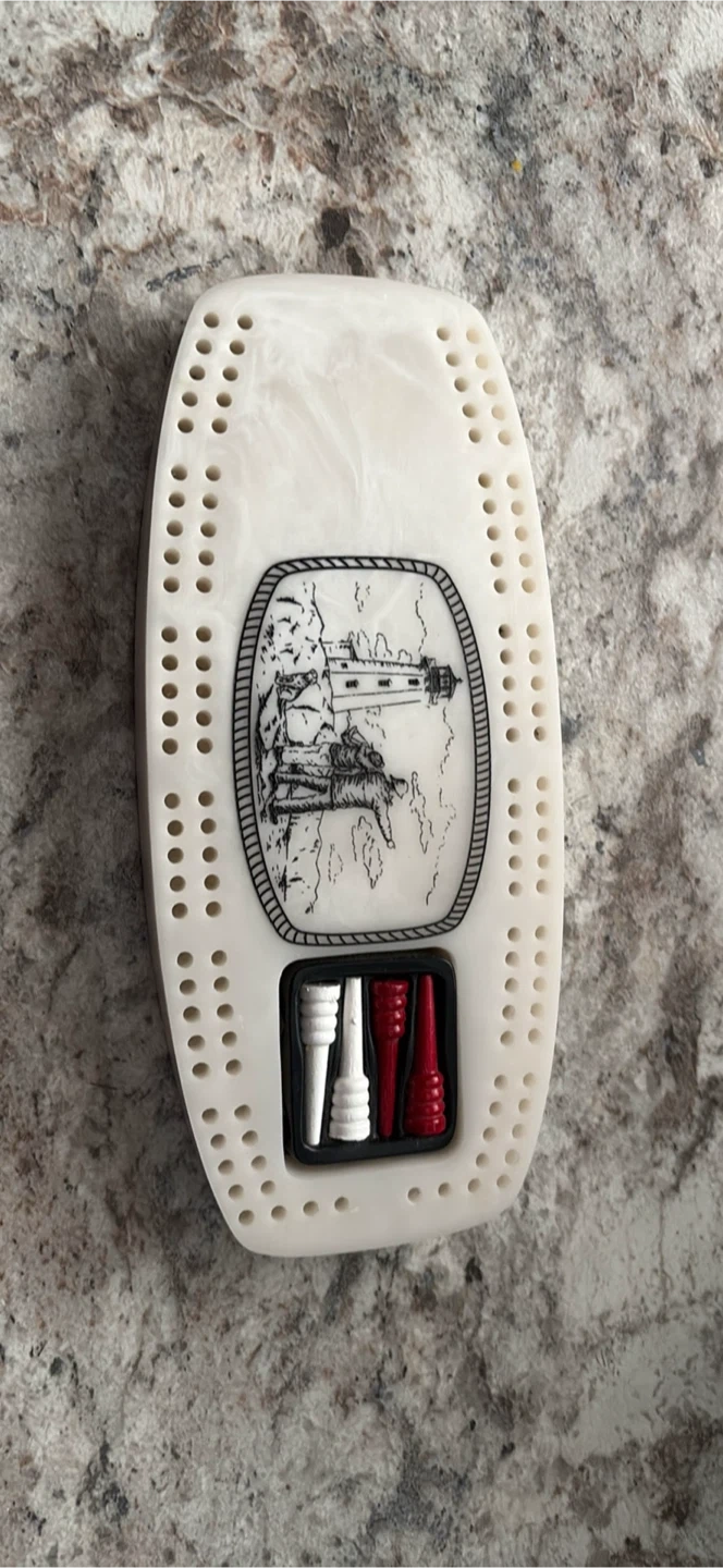 Made of marble like material, this travelling cribbage board was purchased for $12.99 plus tax. Asking $10. Never used. From. Smoke free home.