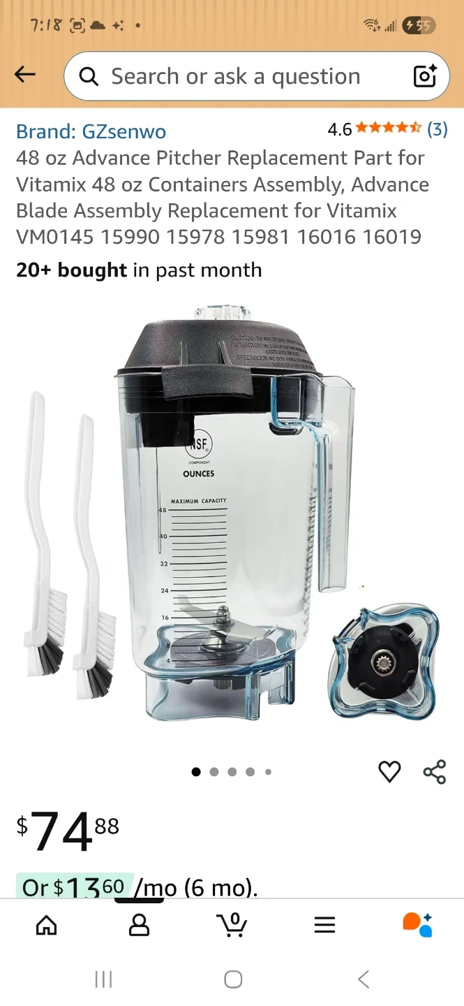 This is a 48 oz replacement pitcher for Vitamix blenders. It's designed to fully replace Vitamix containers 15978, 15981, 16016, 16015, 16019, 58988, 58989, 58990, and 58991. The container features a triangular base for stability. This part is made with electrophoretic treatment for a surface metal that's less prone to rusting.