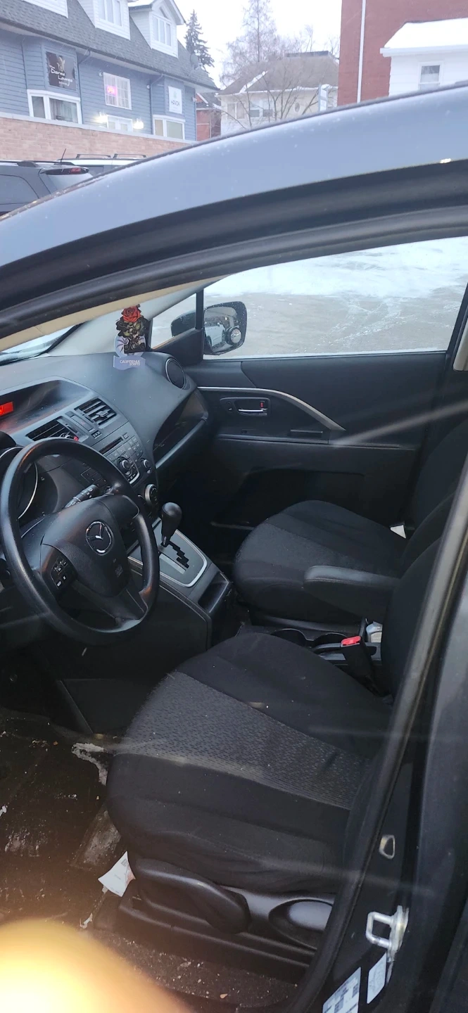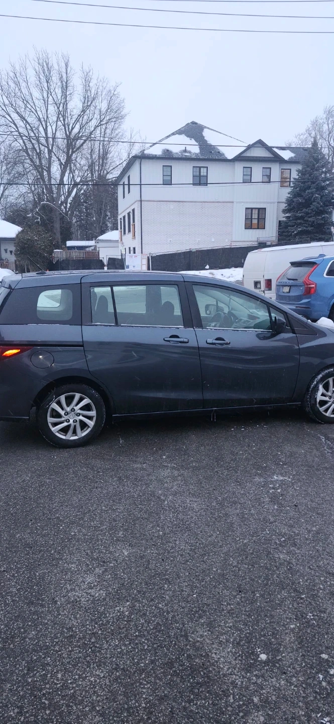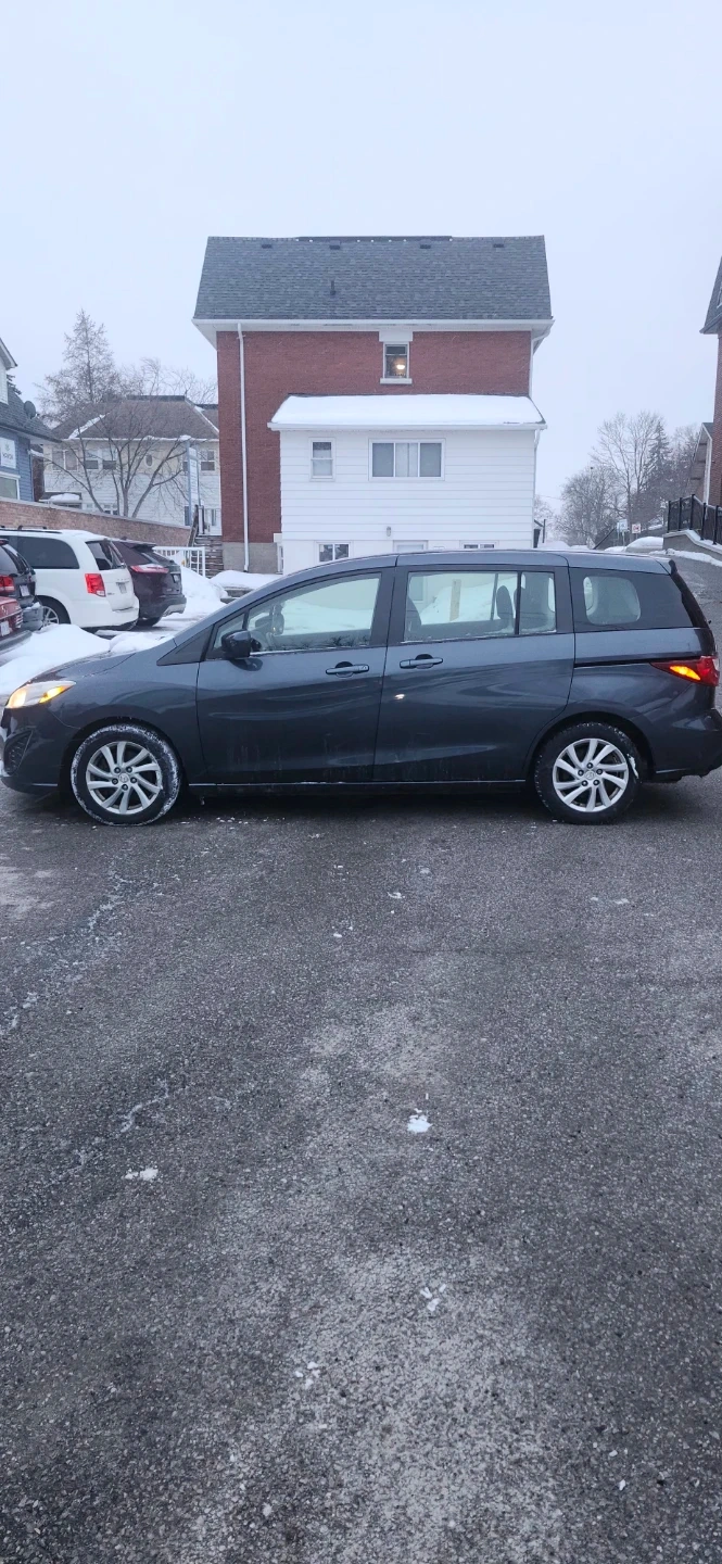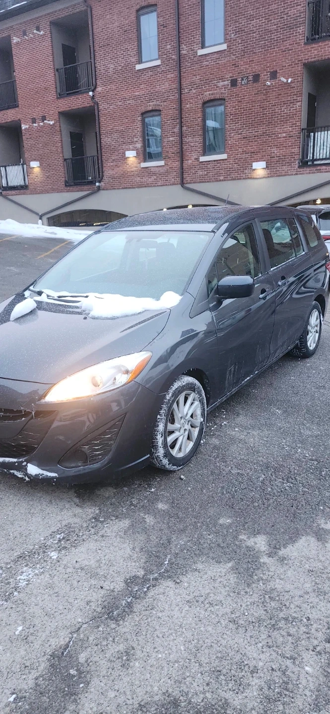 Dark grey Mazda 5 minivan. Automatic transmission. Seats 6-7 people. Excellent condition, runs great, priced to sell.215,000km needs rear passenger taillight bulb to certify, regular maintenance, recent full synthetic oil change, full transmission flush, cadylitic converter flush, injector/gas treatment, new wipers, new tires. No rust/major dents or scratches, great car