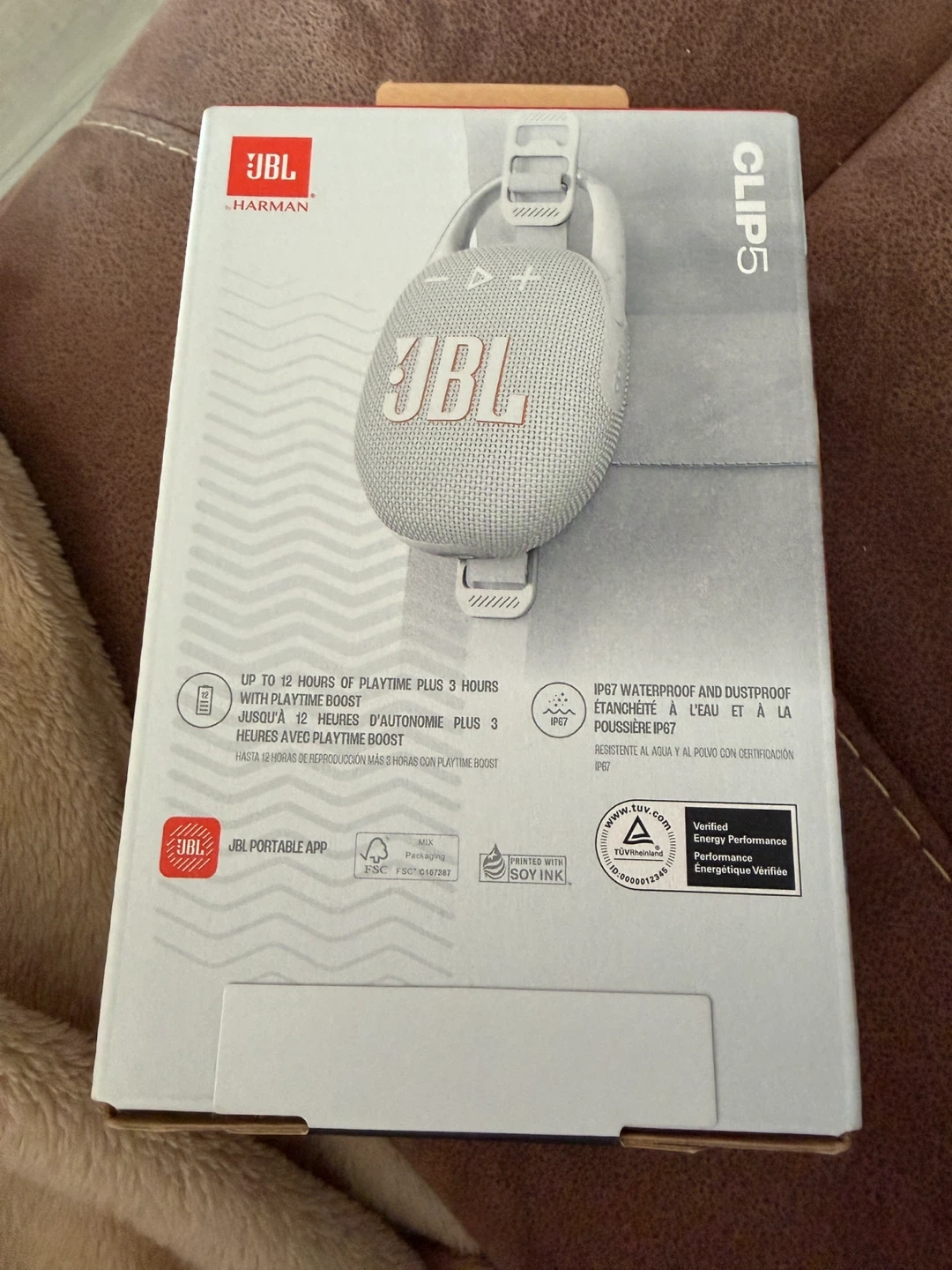 Brand new in box , packed JBL Clip 5 Bluetooth portable speaker. Waterproof and dustproof with IP67 certification, Enjoy up to 12 hours of playtime, plus 3 more hours with playtime boost. It also features Bluetooth v5.3 for seamless connectivity.