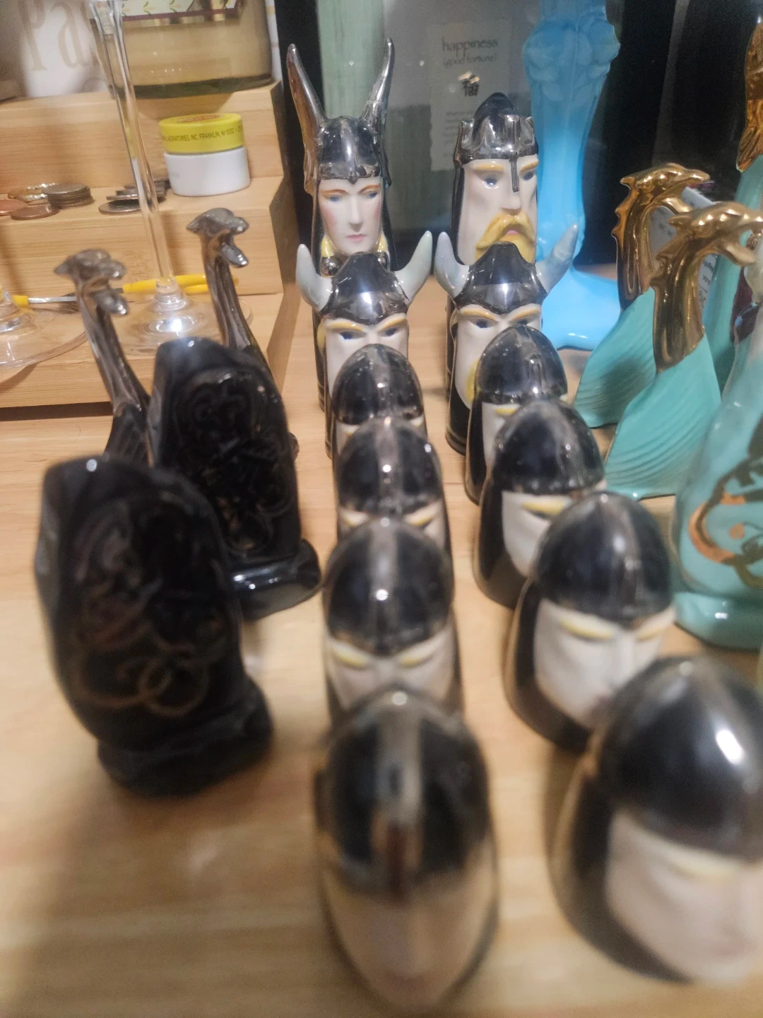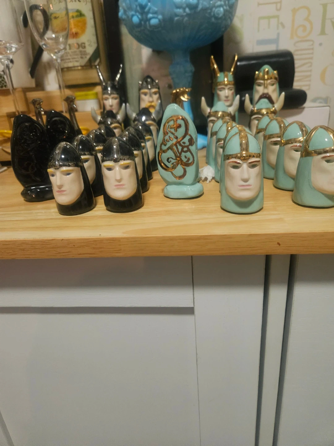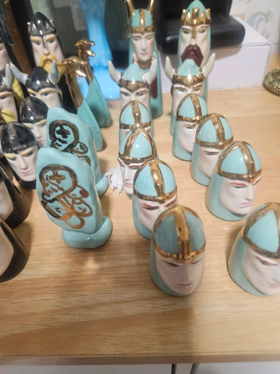 Vintage 50s Ceramic Viking Chess Set 36-Pieces