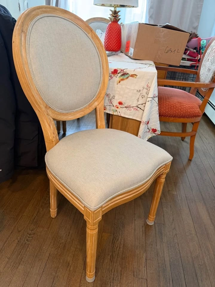 4 Beige Tweed Louis Style Dining Chairs