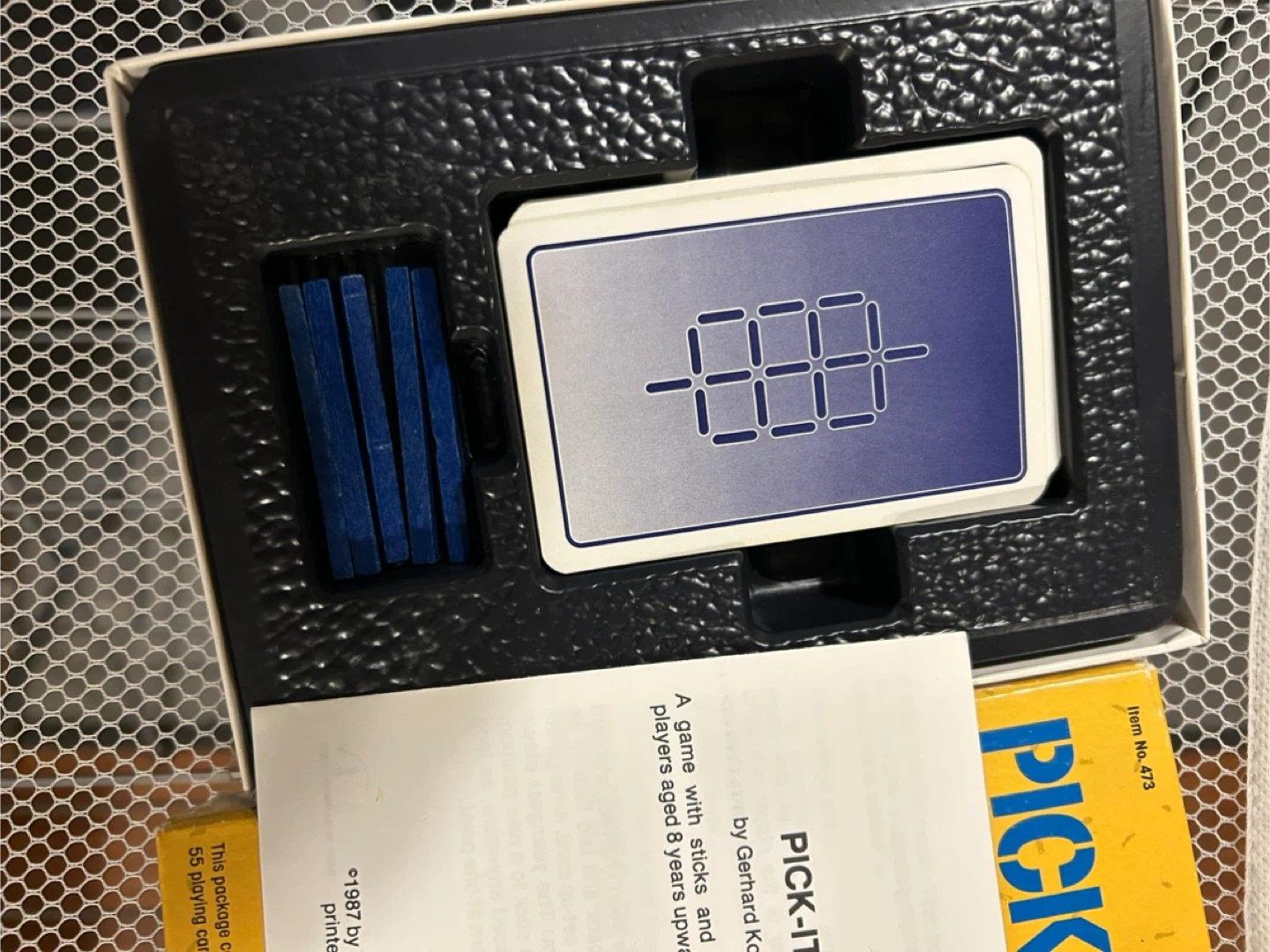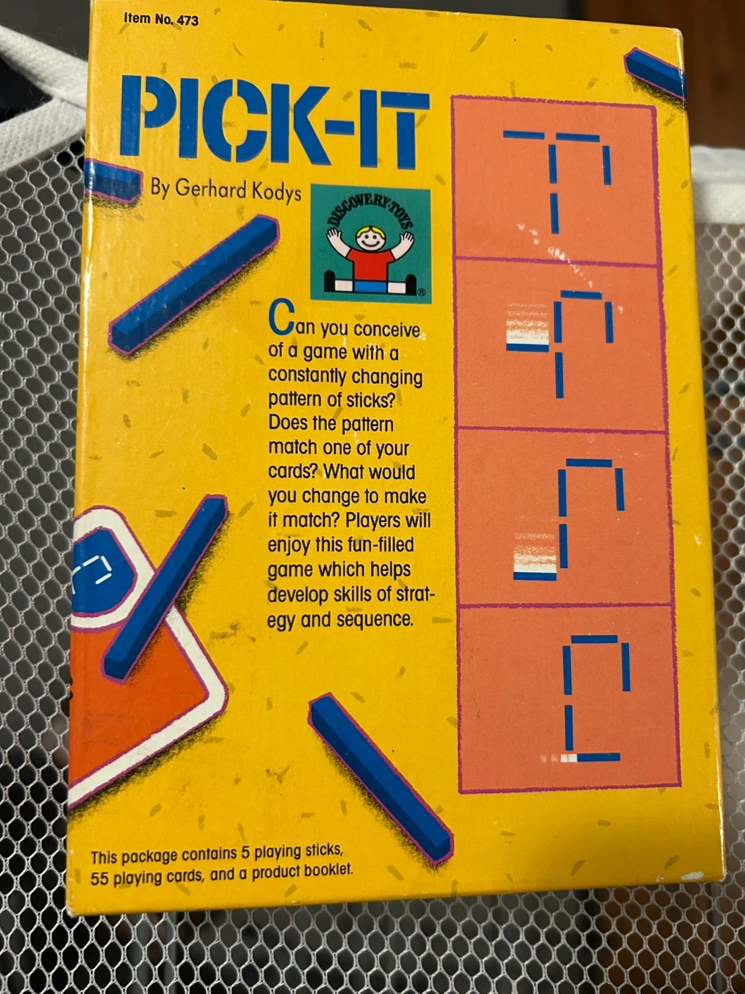 A game with sticks and cards for ages 8 years and up. Players will enjoy this fun-filled game which helps develop skills of strategy and sequence. The package contains 5 playing sticks, 55 playing cards, and a product booklet.