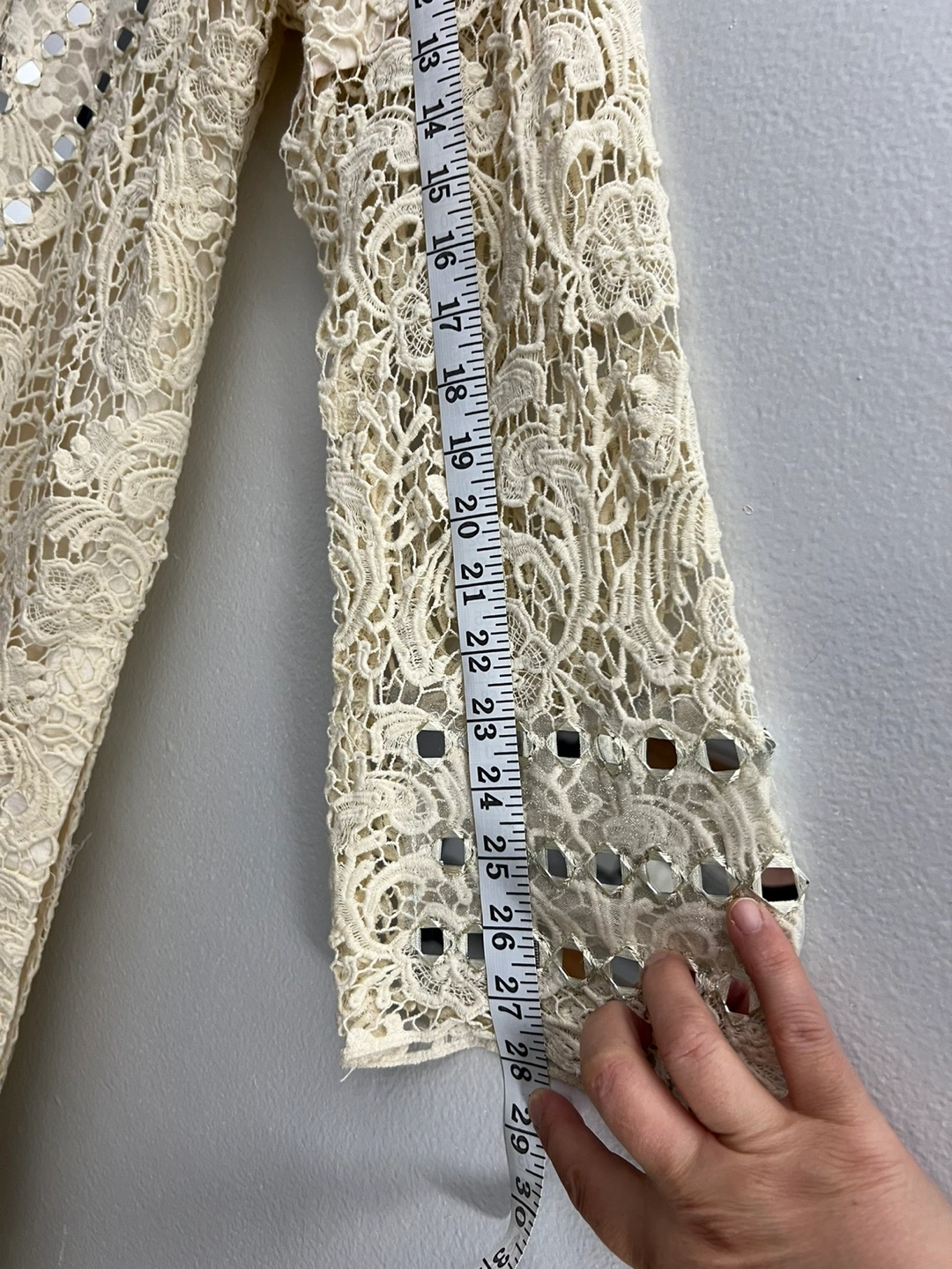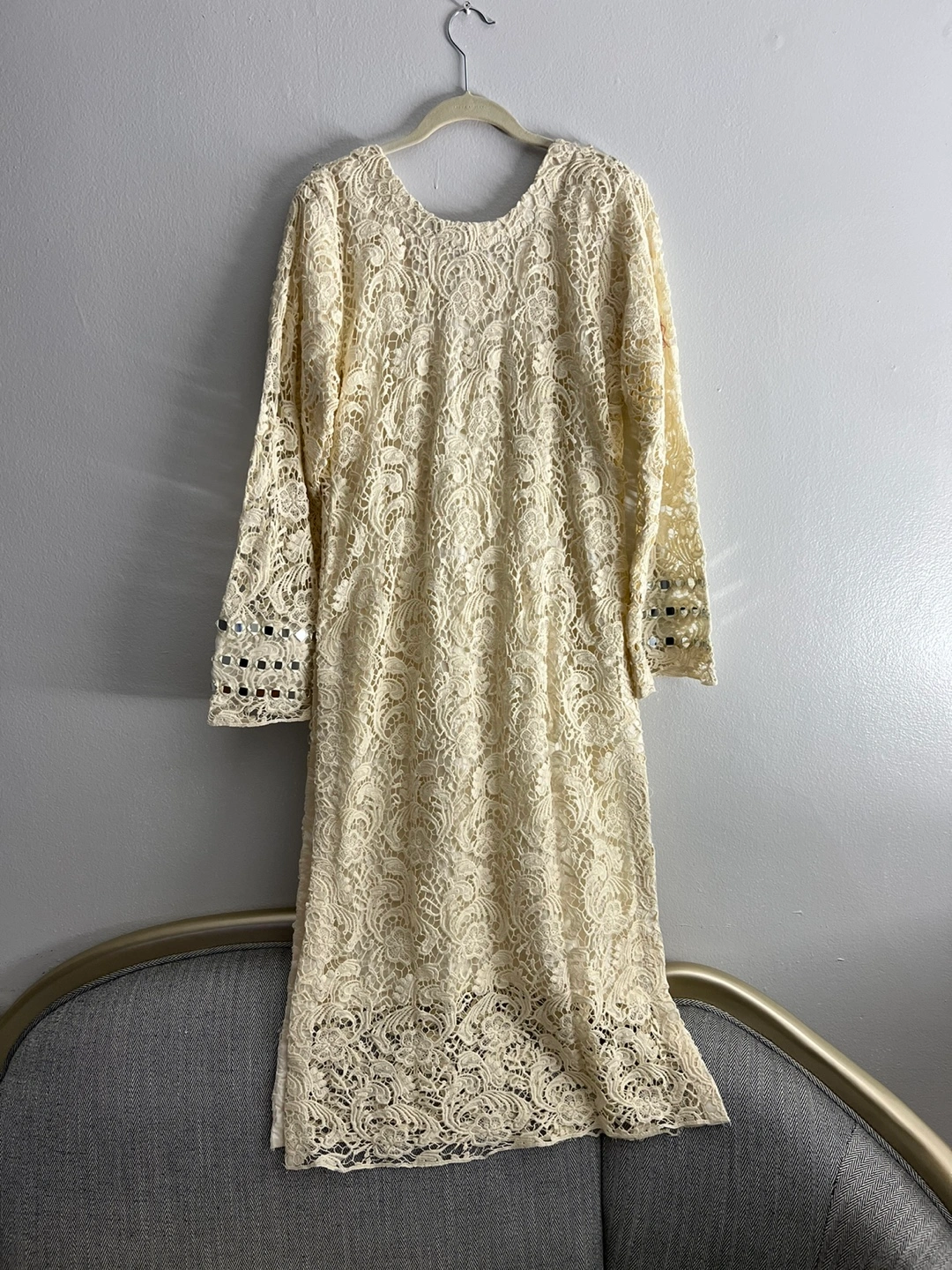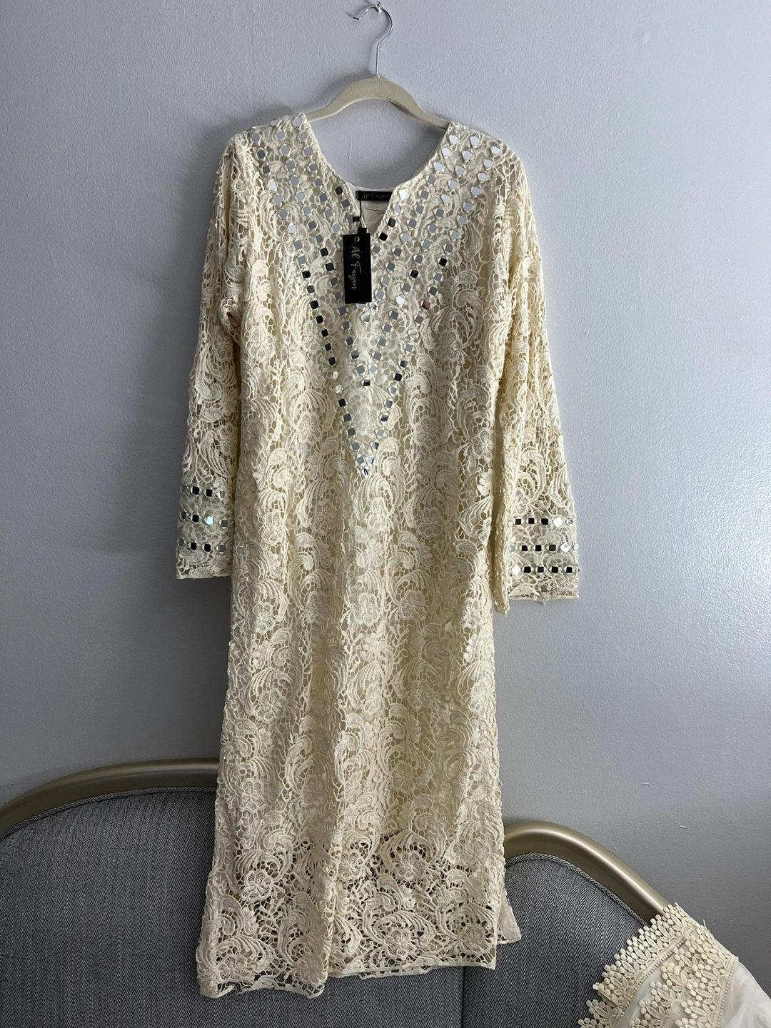Cream lace dress with mirror work. Comes with a matching dupatta. Long sleeves.new never used pick up only