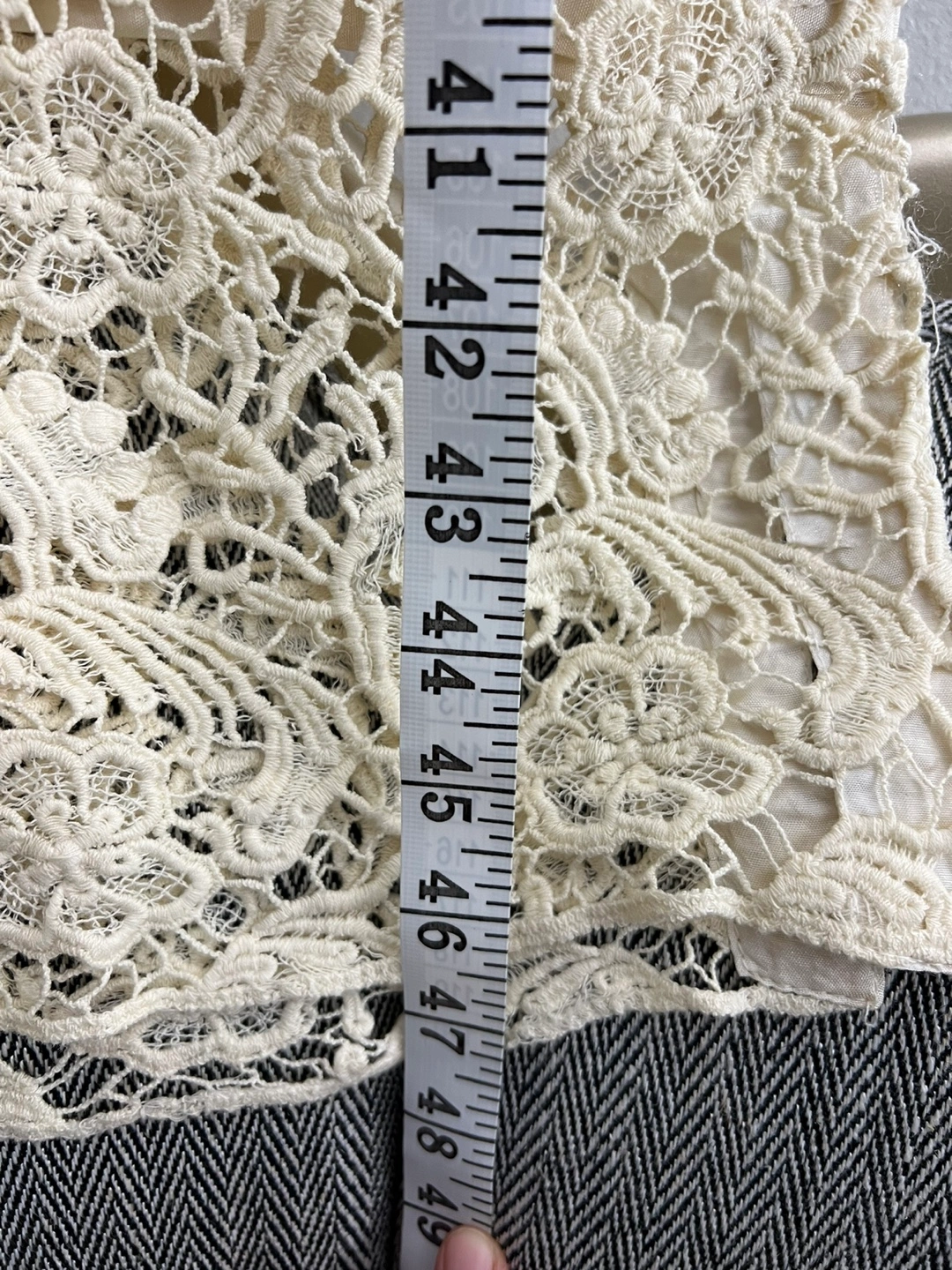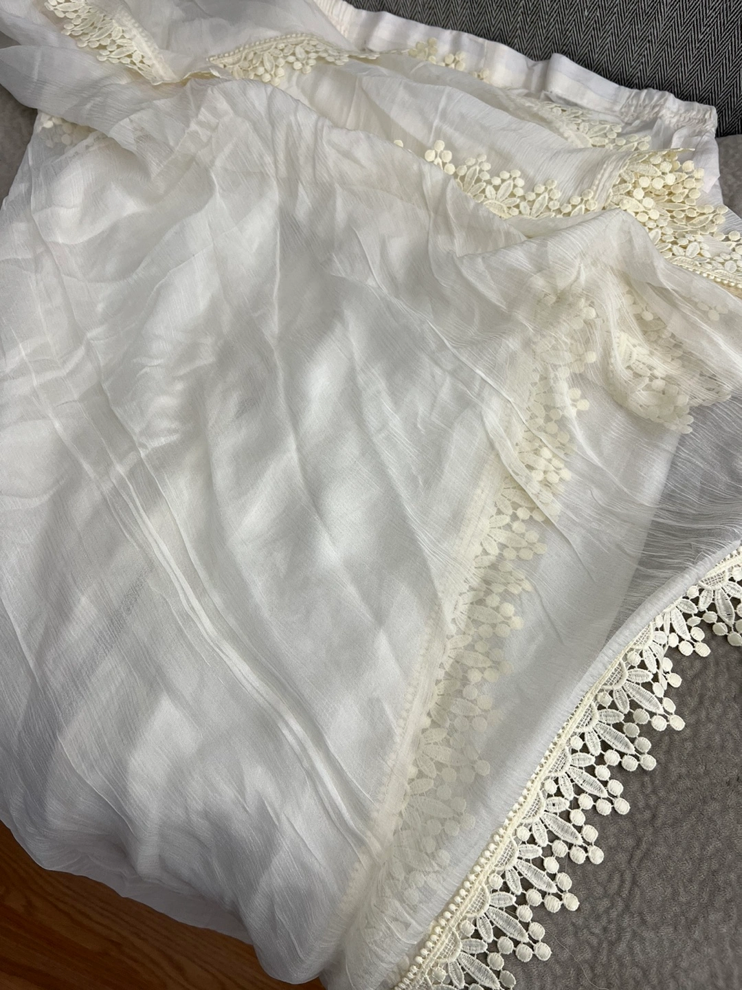 Cream Lace Dress with Mirror Work and Dupatta