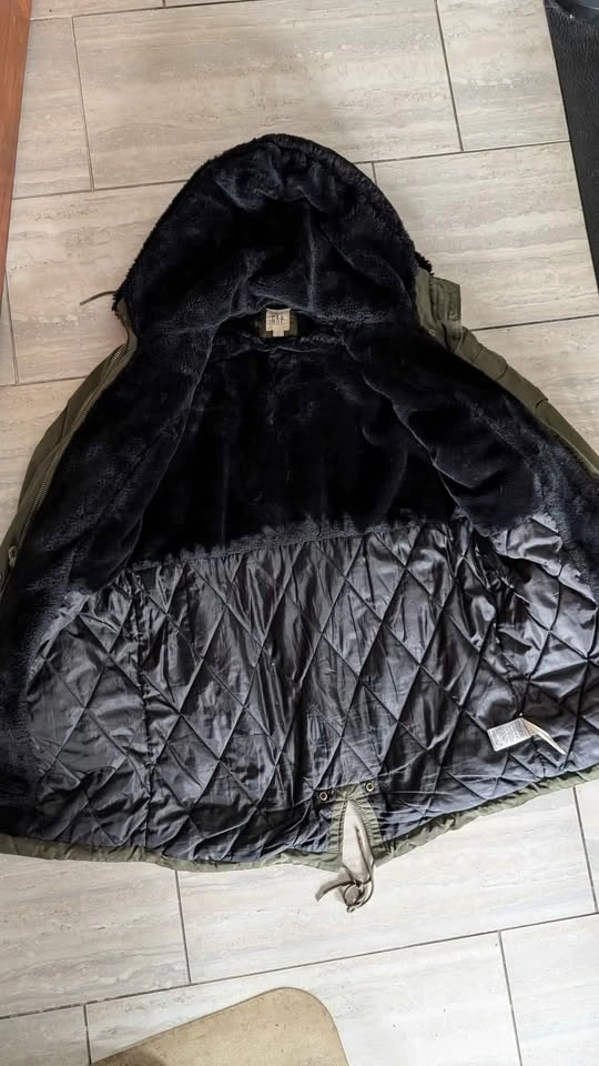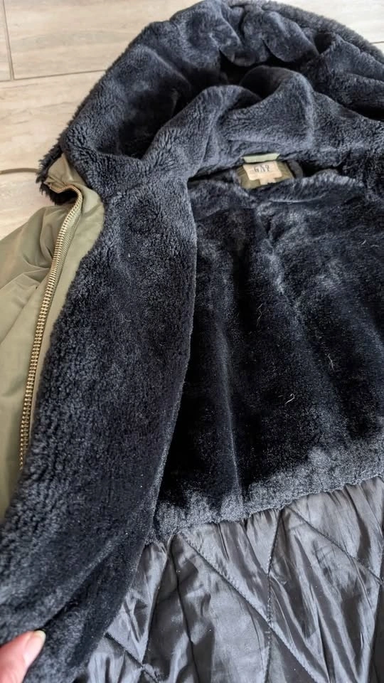 Gap army green and black winter jacket. Size women's small (fits a little closer to a medium). In excellent condition, worn one season. Features several pockets and a waistline tie for added shape. Soft hood and inside lining for warmth and comfort. Located near Greenwood and Danforth area.
