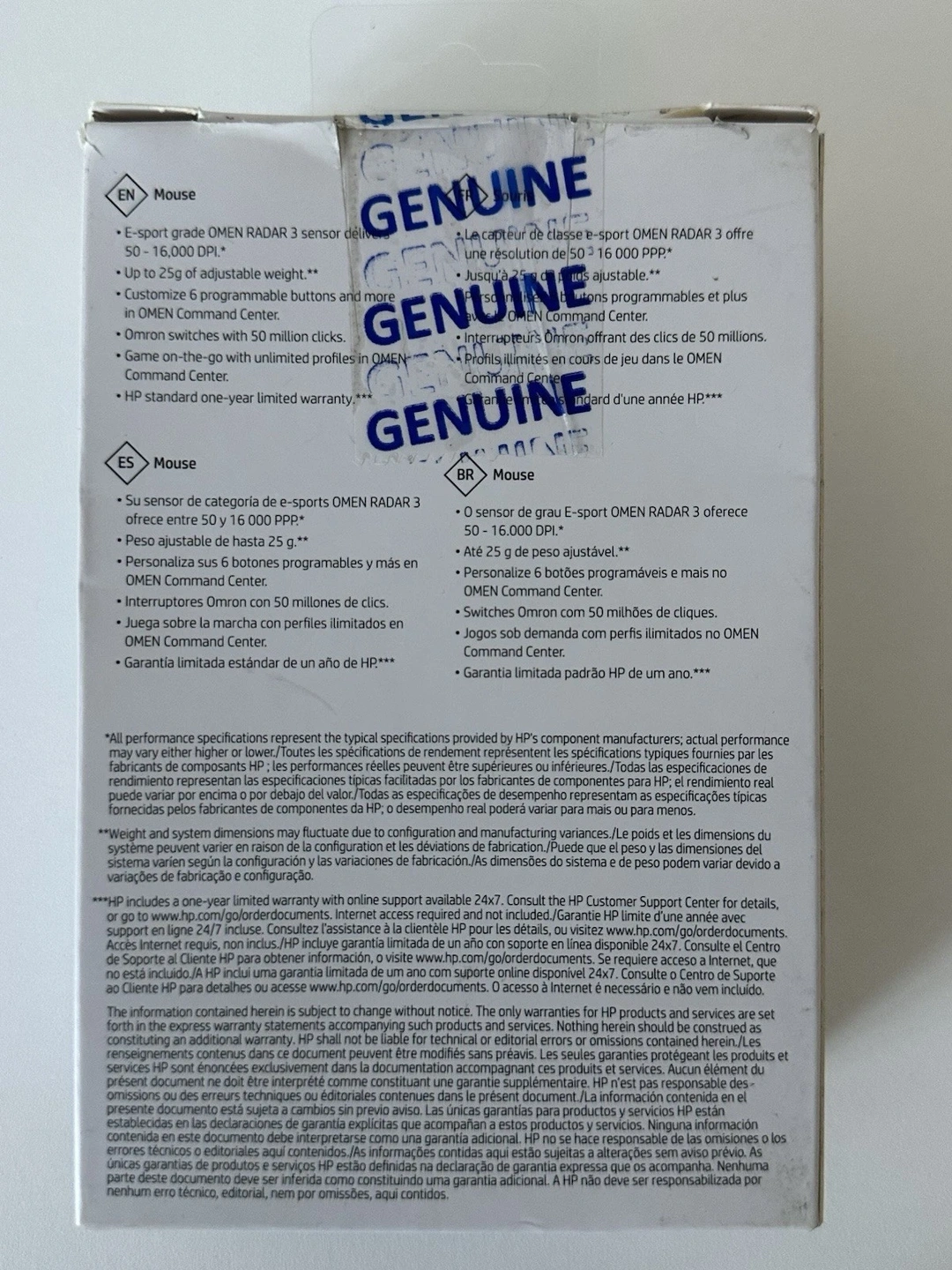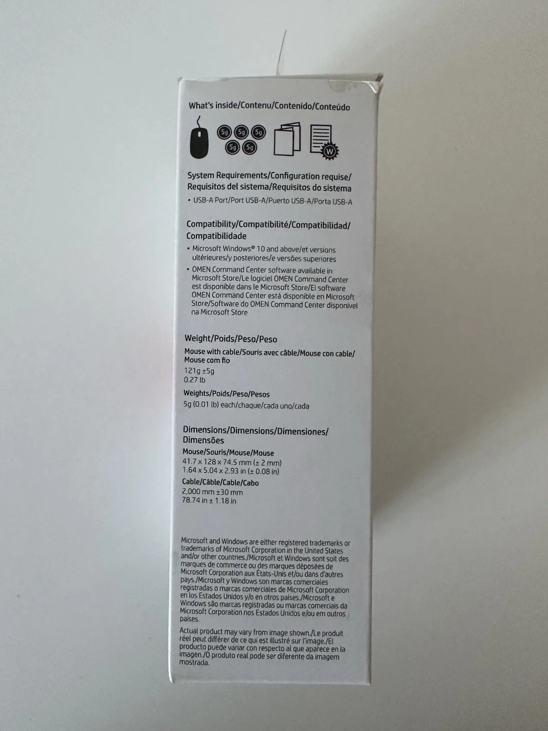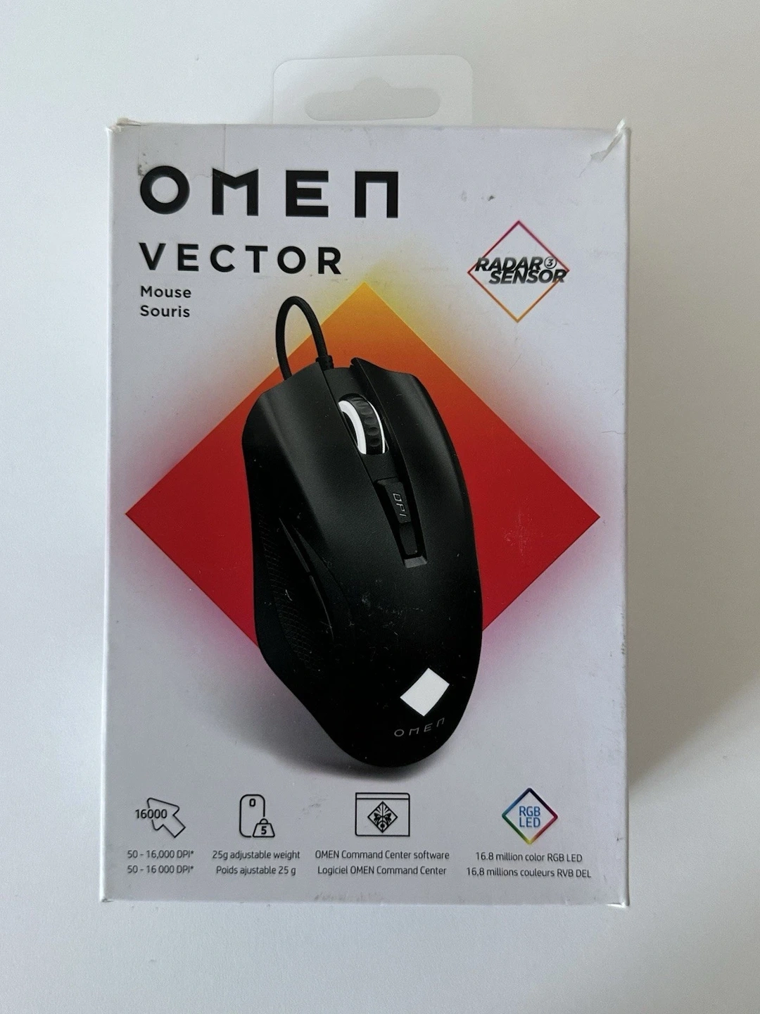 Open box. Black. Optical tracking. 6 buttons. OMEN brand. Gaming mouse. 1 Year manufacturer warranty. Wired USB. Features: Programmable Buttons, Ergonomic, Adjustable DPI, RGB LED, Adjustable Weight.