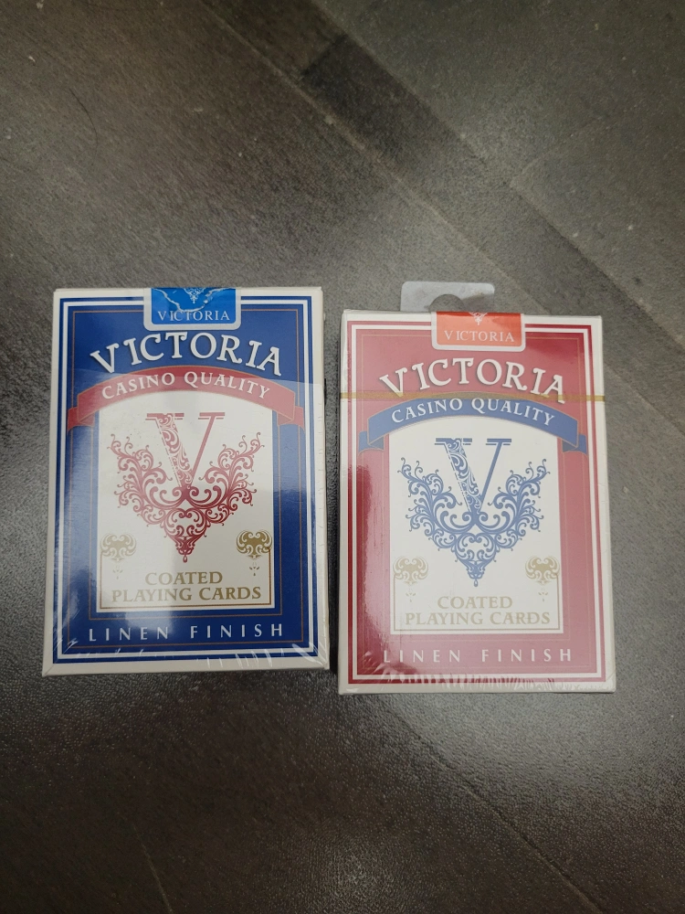 132I have two packs of Victoria Casino Quality playing cards for sale. One pack is blue (opened) and the other is red (new). Both are coated with a linen finish and are brand new in their original packaging CASH ONLY PICK UP ONLY
